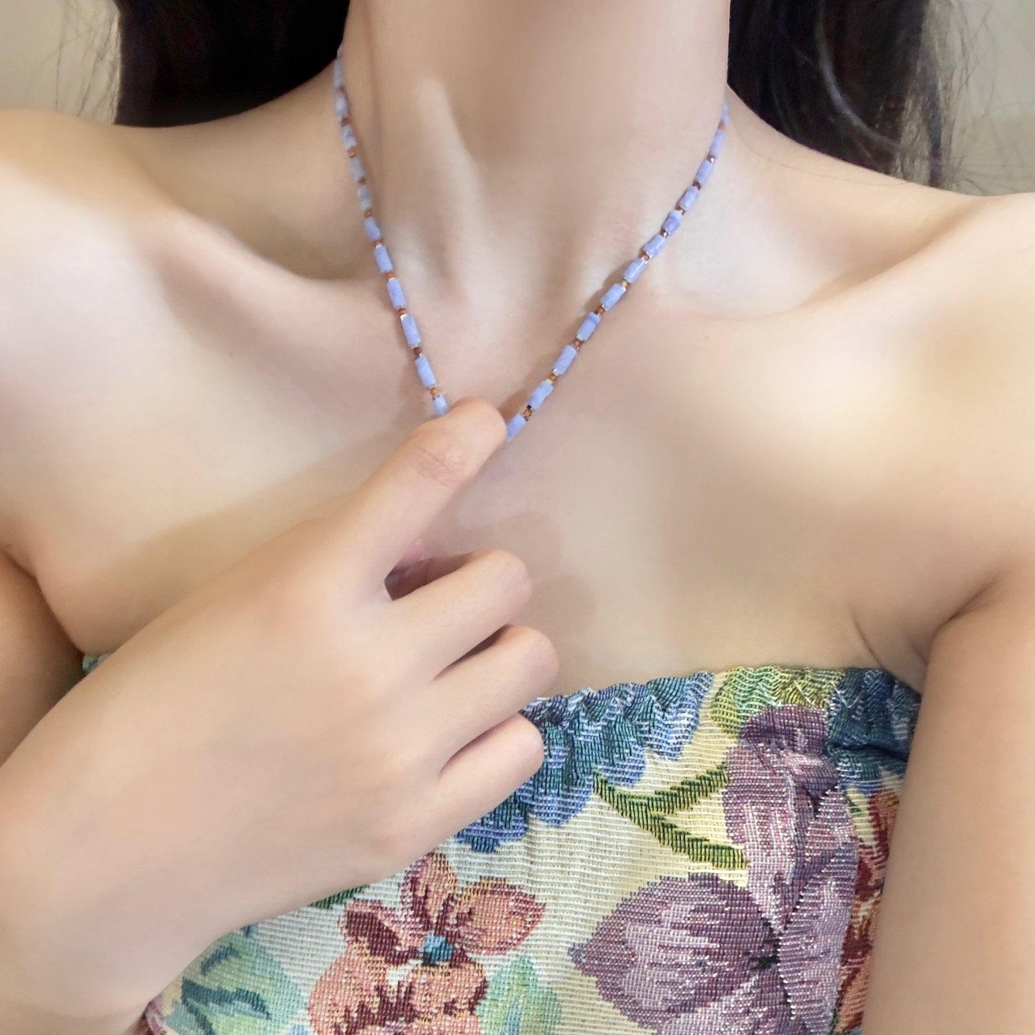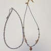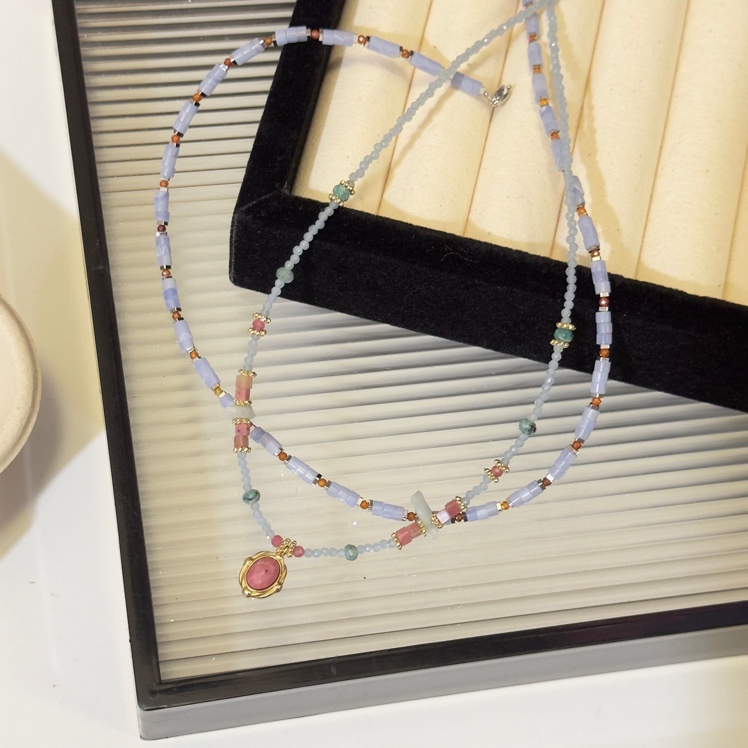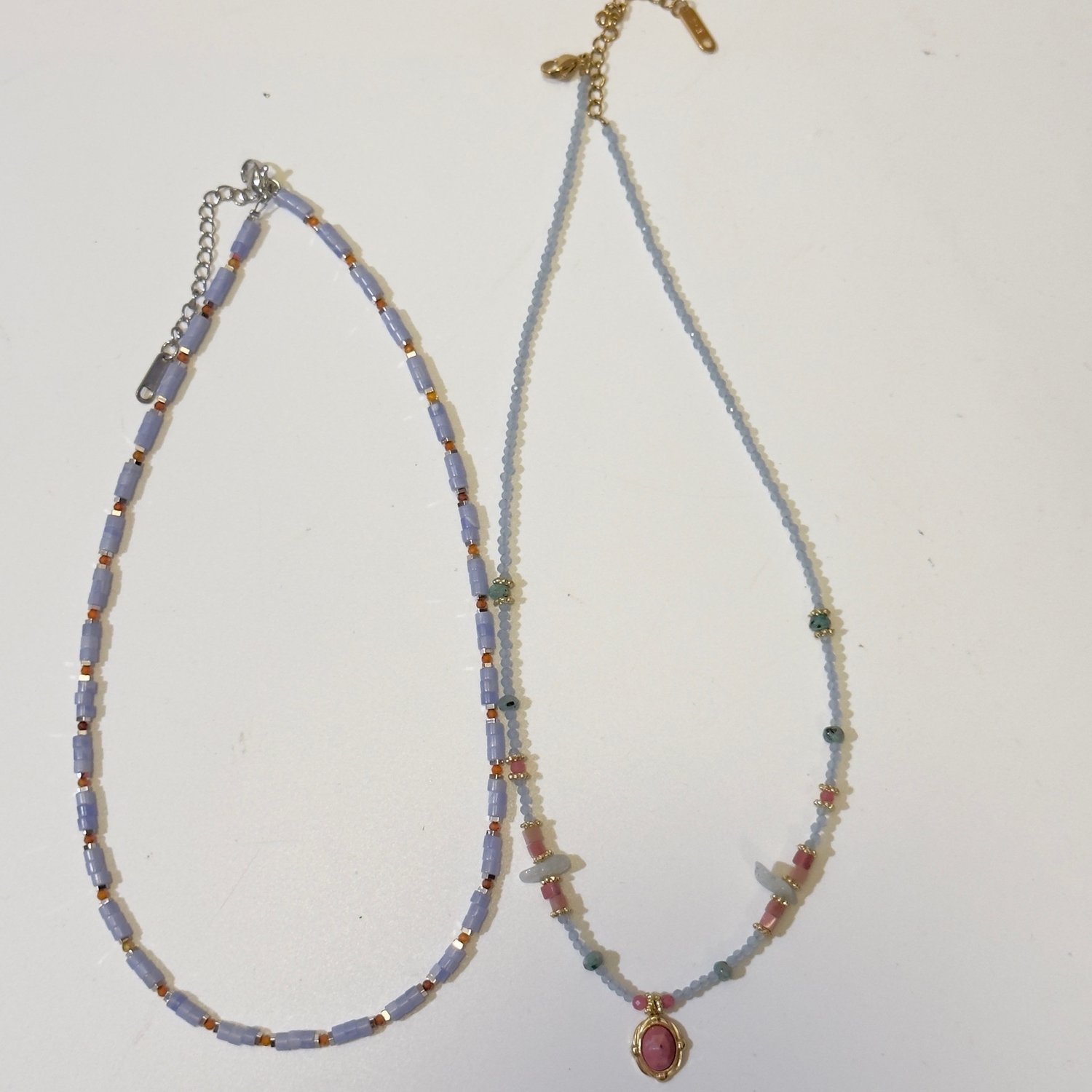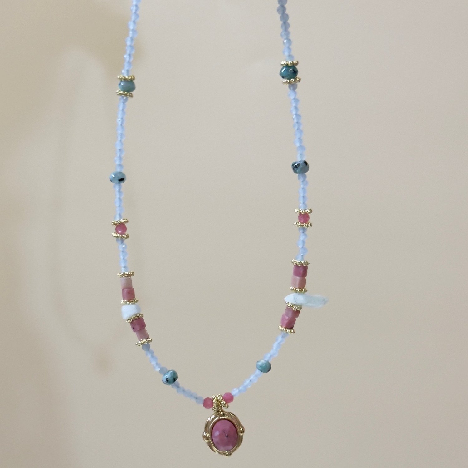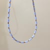 Handmade retro blue pink beaded choker stacking pendant necklace