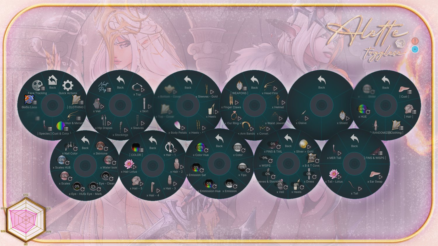 Ears / Tail+Lotus / Mermaid Tail / Wisps(Hips/Lower/Upper) / Fins(Wrist/Head/Ankles)
