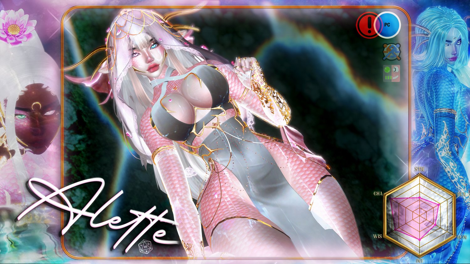 Showcase ; DDYSTUDIOS (Me / Bentai / Nessy) / hair 1 ; nessy. / hair 2 ; saikura / hair 3 ; vampidoll / hair 4 ; saikura / hair 5 ; saikura / Alette's full design outfit / other pieces were all made by bunisu, she will sell parts of this commission in a couple weeks / elf ears ; milkymutt / rings ; Khihani / body texture scales ; LostThings /Face piercings(moon) ; Me / Facetracking ; goduponthisland / Head (edited by bentai_ NO REUSE FOR ANYTHING) nessy. / Body( edited by me no reuse ) ; zinpia / Eye texture ; dragonpitt / GOGO ; / VRCFURY / Limb scaler ; nanochip