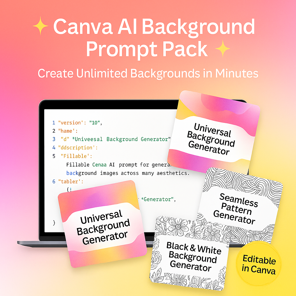 Take your digital products to the next level with this AI-powered background design system. Whether you’re making journal covers, planners, stickers, or coloring pages, this pack gives you the exact prompts and tools you need to create professional-quality backgrounds — fast.