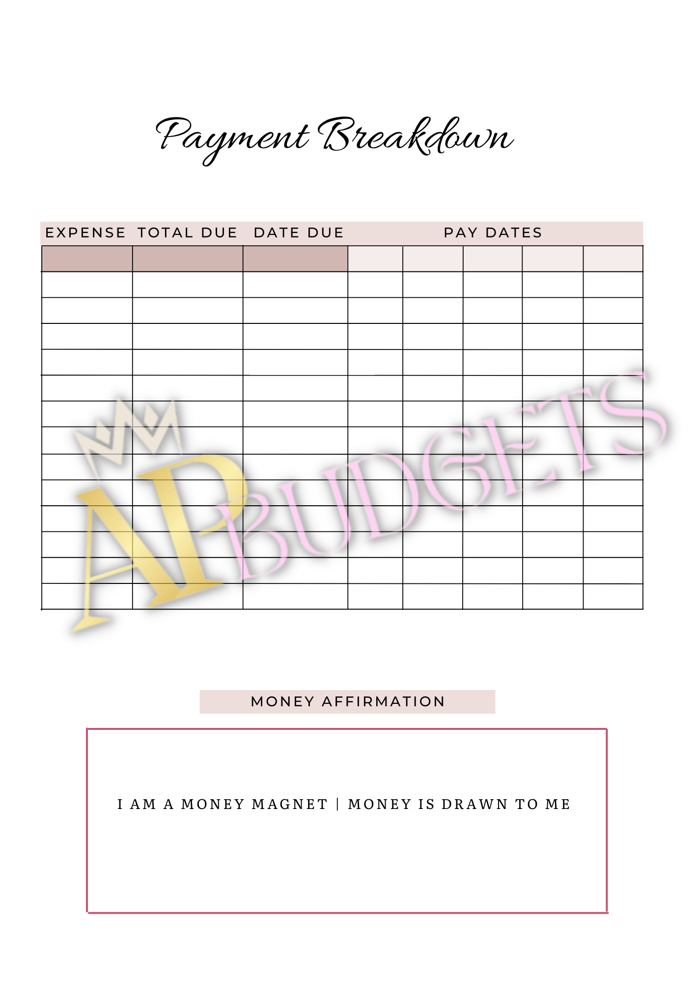 Included in the digital budget planner: