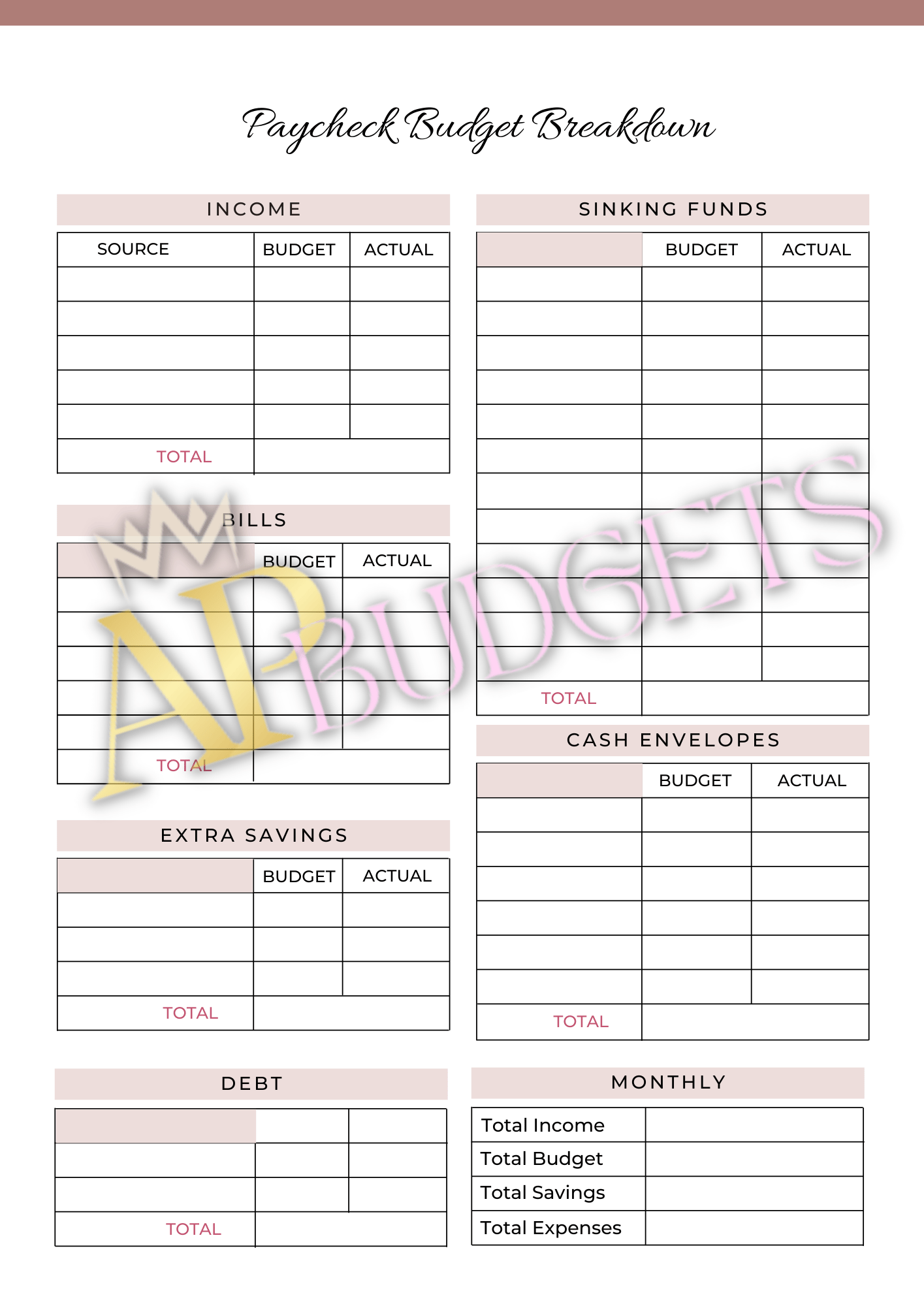 With places for financial goal tracking, brain dumps, monthly meal planning, shopping lists, and more so you can easily keep track of where your money is going.