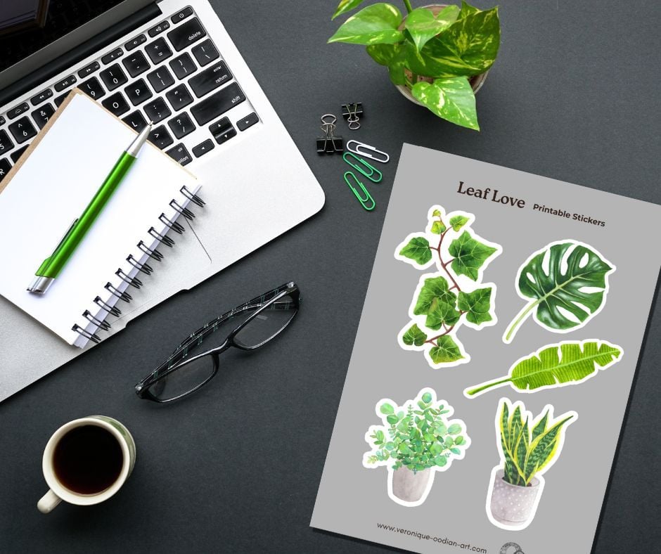 Leaf Love Printable Sticker Sheet PDF