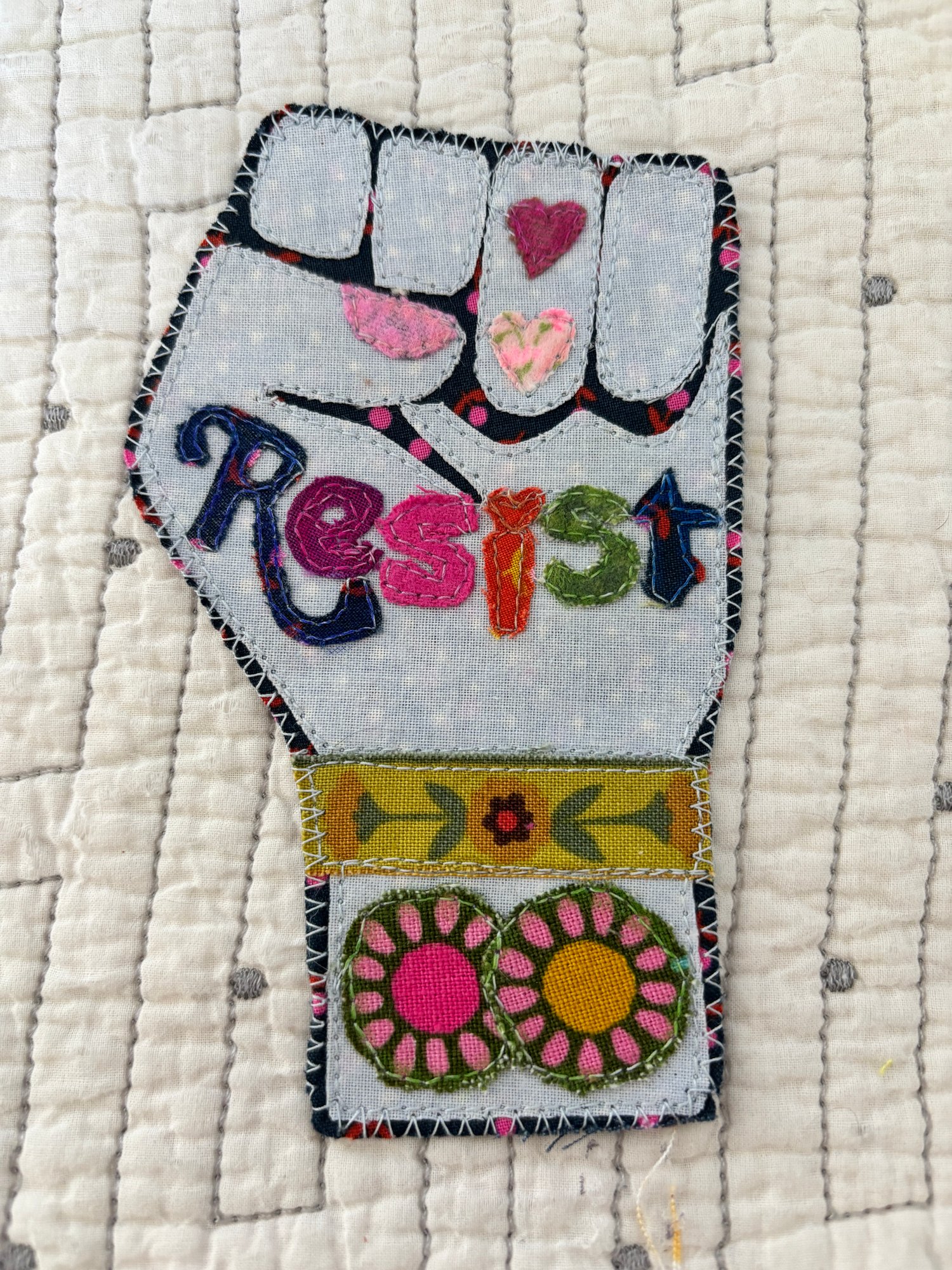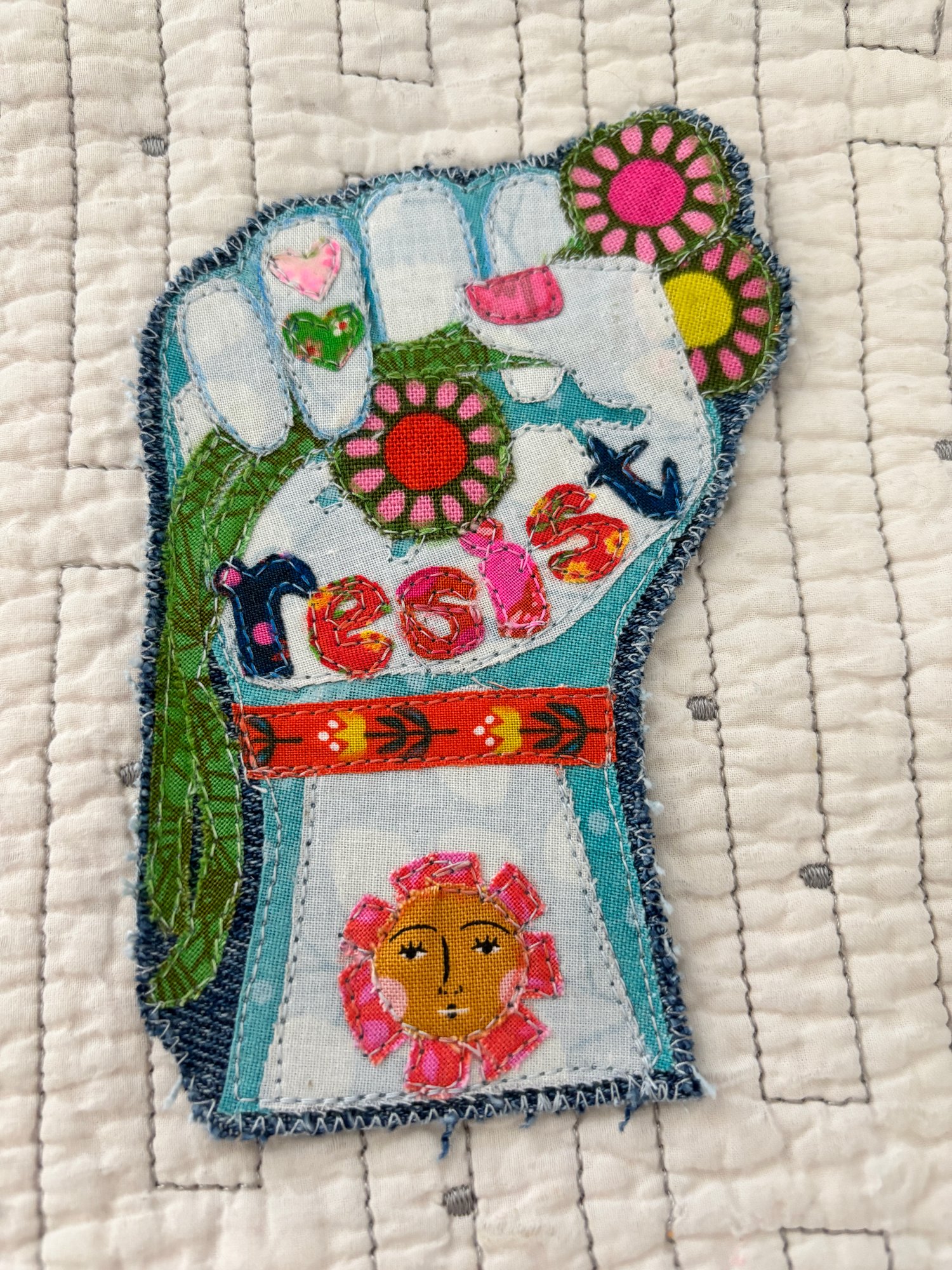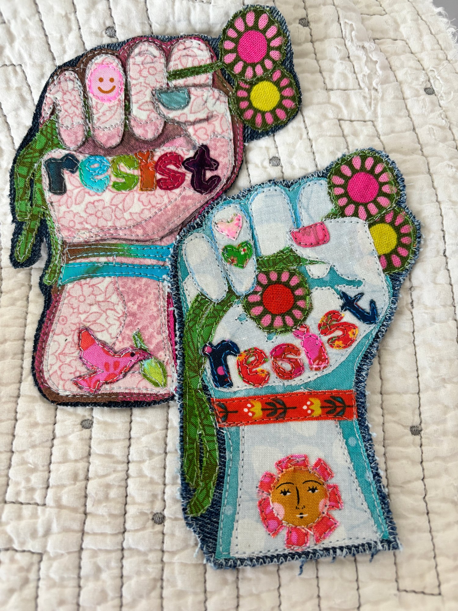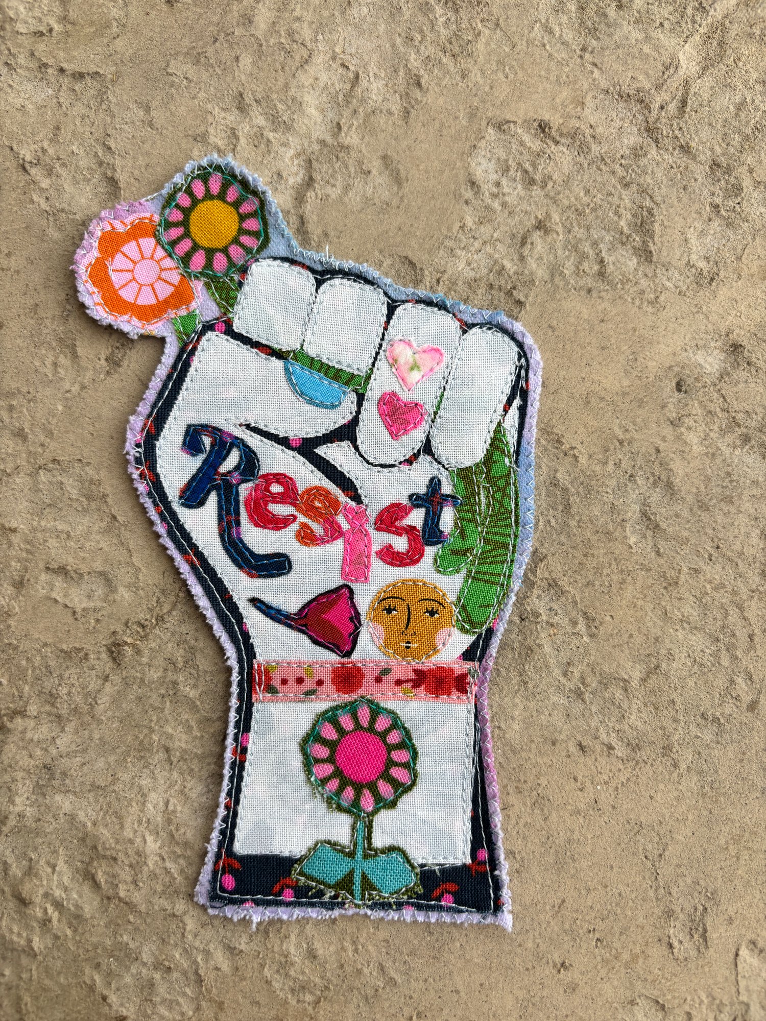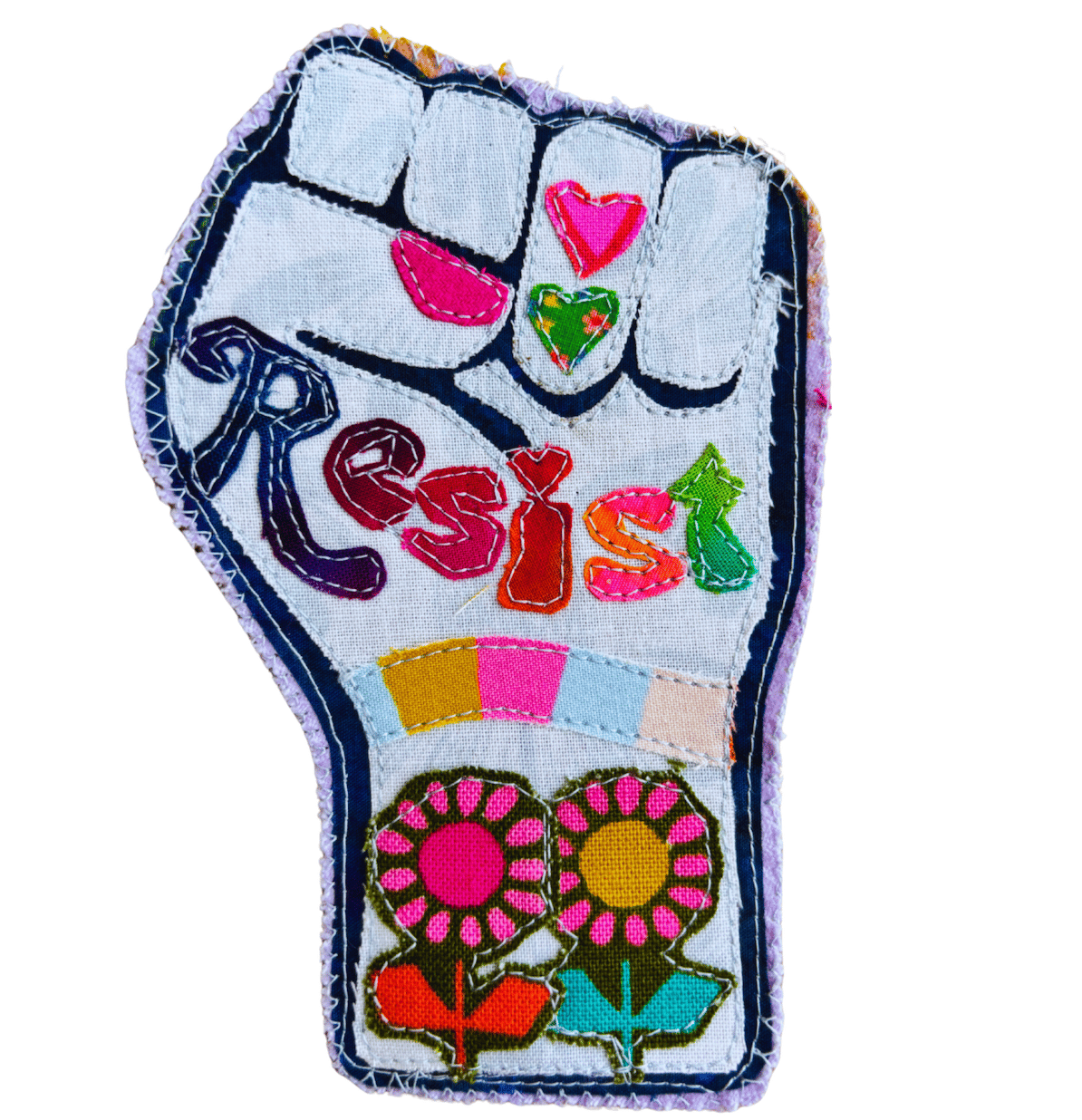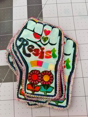 Make your own "Resist" fabric appliqué patch from scratch — no experience needed. This pattern walks you through everything with photos and video links so you can see exactly what to do at every step.