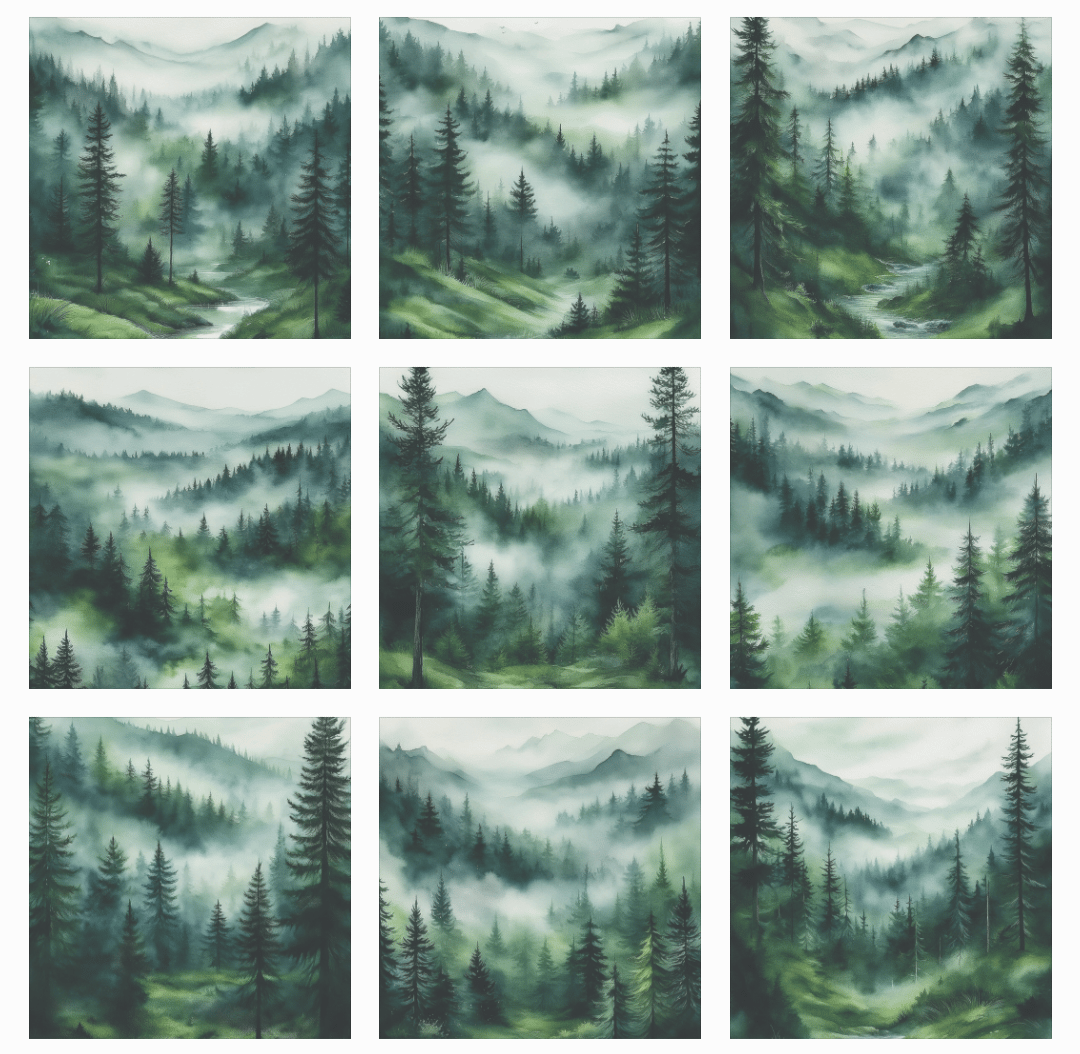 9 high-quality and distinctive. artworks.Appalachian Mountains Misty Pine Trees Art Painting, Vintage Landscape, Vintage Landscape Art Print, Country Field Wall Art, Botanical Art Poster, Appalachian Mountains Forest Prints Pine Trees.