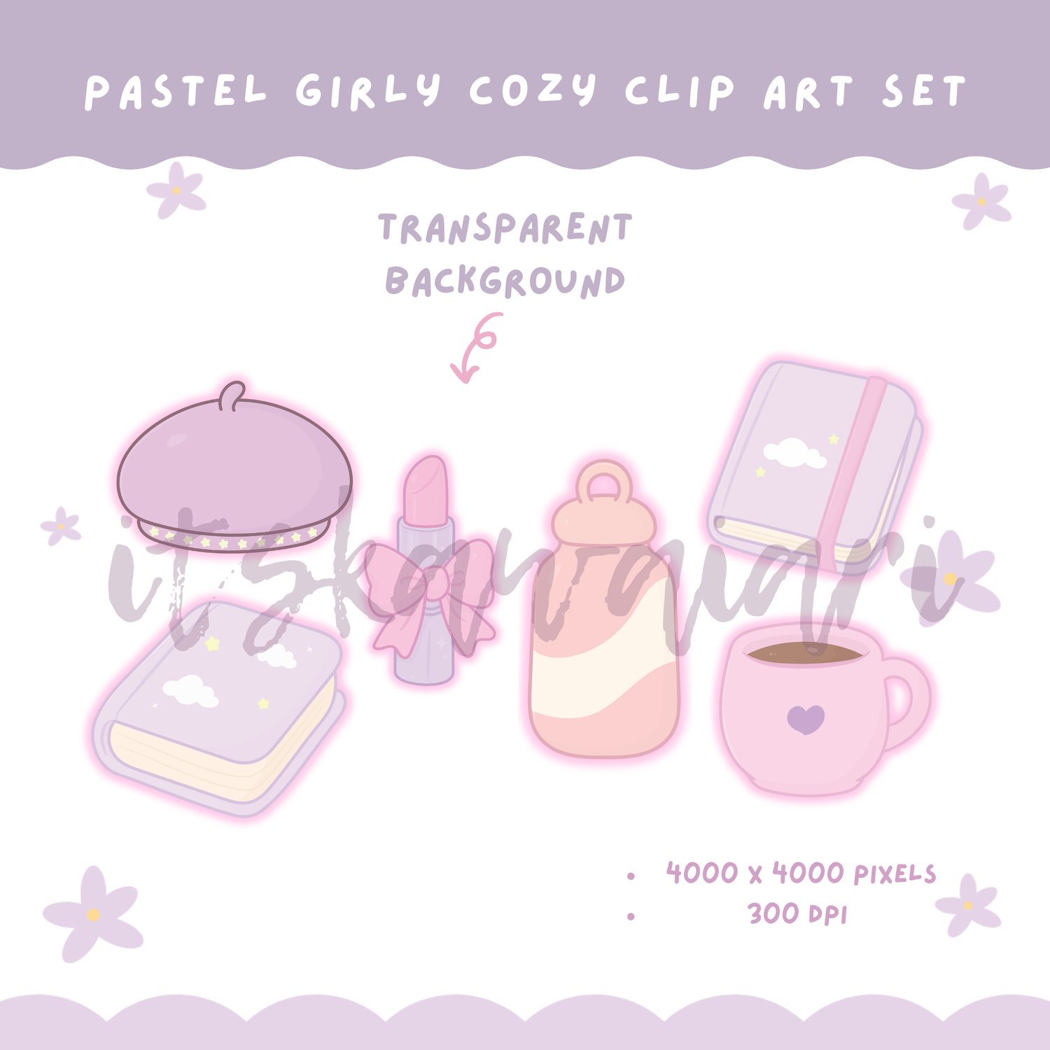 A soft, pastel girly cozy clip art collection perfect for planners, journals, stickers, and personal creative projects 🌸