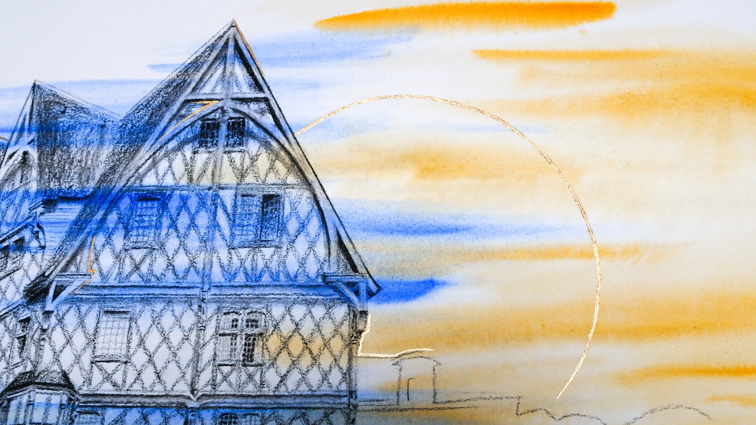 Il est tôt et déjà le soleil embrasse la ville de ses premières lueurs. Petit à petit, la maison d’Adam se dévoile. De fenêtres en losanges de verre, de colombages en figures sculptées dans le bois, cette maison nous raconte un temps révolu.