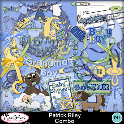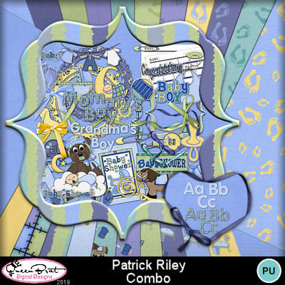 A beautiful baby boy themed kit using the wonderful clip art of Digi Web Studio. This kit is a tribute to my first grandchild, Patrick Riley. It includes lots of word art, 2 Alphas, and all the goodies you may need for a baby boy announcement, shower invitation, or layouts