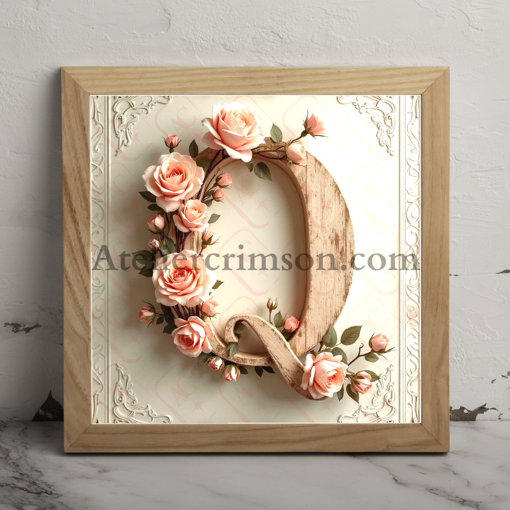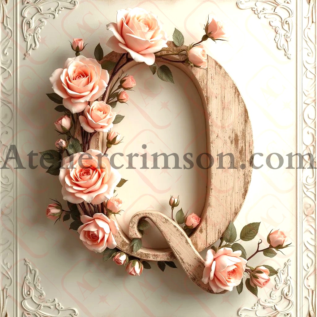 The letter Q soft beige wood and flowers