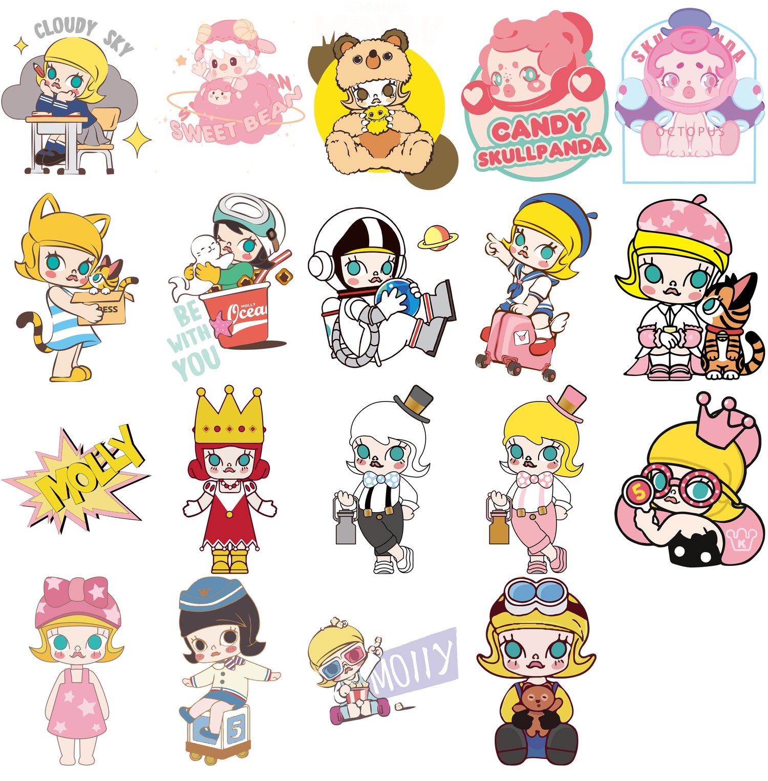 20 Large PNG Illustrator AI Popmart Molly Expressions Digital Artwork ,Stickers for Goodnotes digital planner, kawaii aesthetic clipart