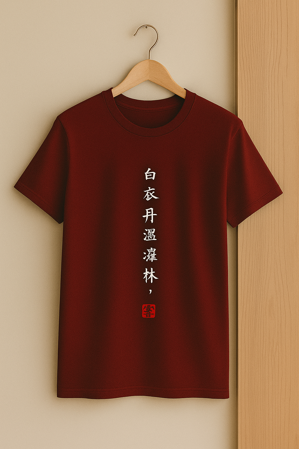 tshirt mockup, japanese calligraphy, red tshirt, streetwear design, aesthetic mockup, clothing mockup, print on demand, minimal fashion, unisex t shirt