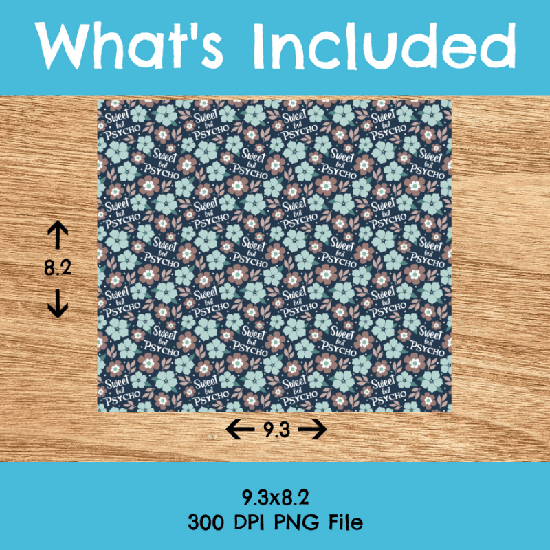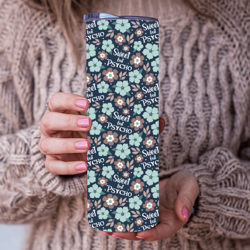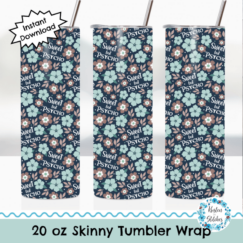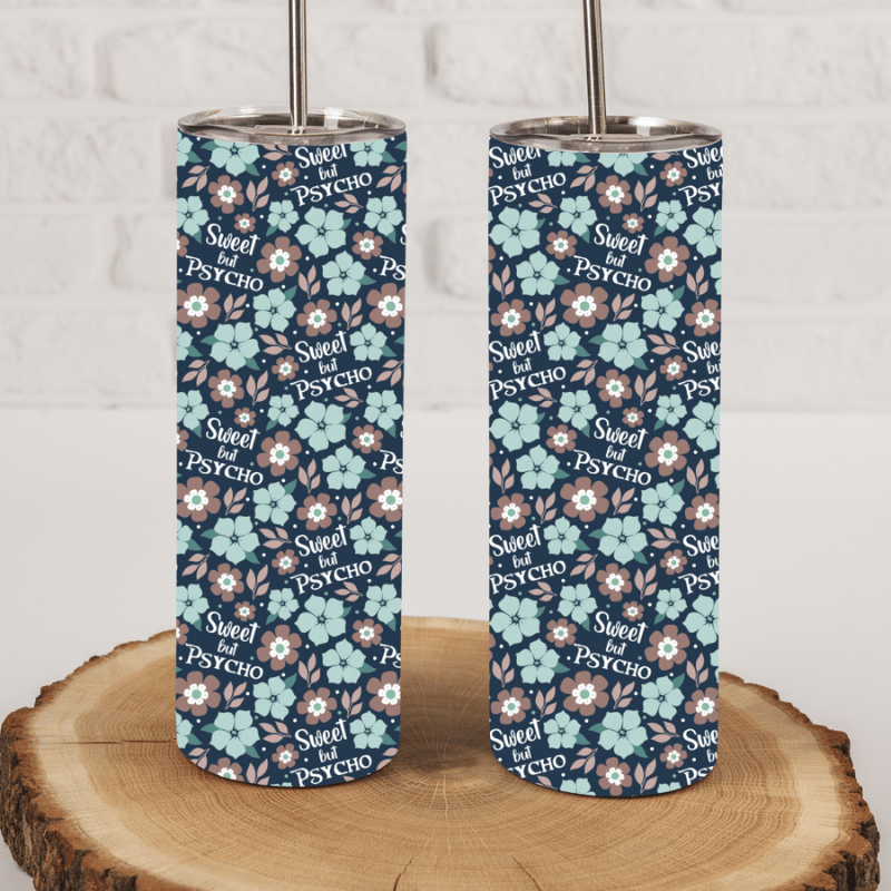 Sweet But Psycho Skinny Tumbler Wrap PNG, 20 oz, Printable Sublimation, Sarcastic Sayings, Floral