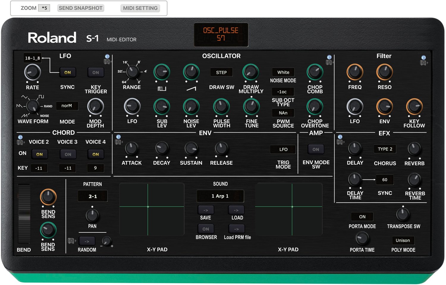 The Roland S-1 Editor gives you direct access from the DAW to the S-1 parameters,