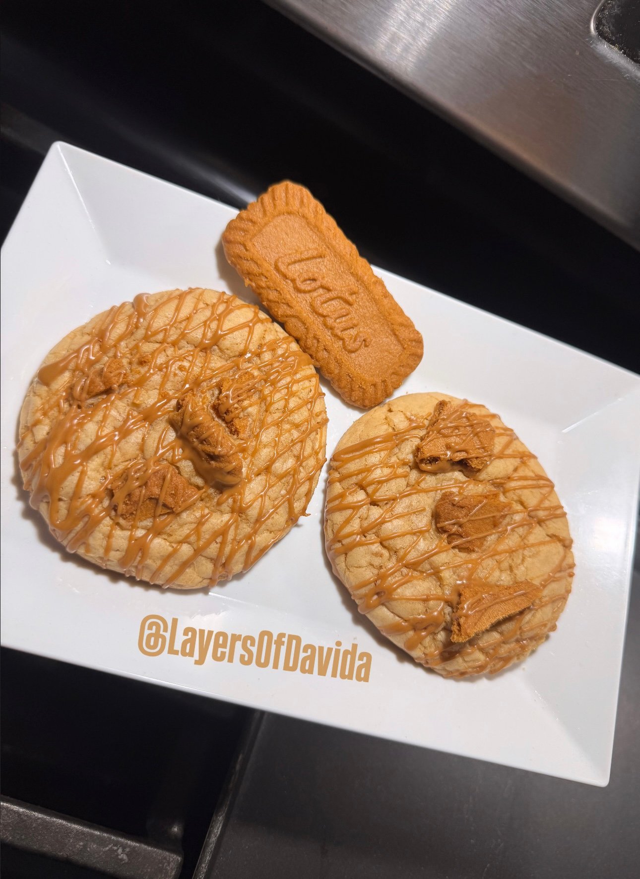 Delightfully soft, chewy, and full of rich caramelized flavor, our Caramelized Biscoff Cookie Bites are crafted from scratch using real Biscoff cookies blended into a tender cookie base. Each cookie is finished with a luscious drizzle of creamy cookie butter, adding an extra layer of indulgence and enhancing the signature spiced sweetness of Biscoff. Every bite is buttery, melt-in-your-mouth perfection with just the right hint of crunch.