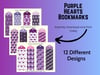 12 Purple Hearts Bookmarks | Printable Purple Valentine's Day Bookmarks | Purple Hearts Page Holders | Gift For Readers