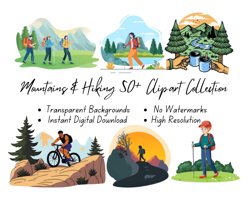 Mountains & Hiking 50+ Clipart Collection | High-Resolution Digital Printables | Instant Download | No Watermark