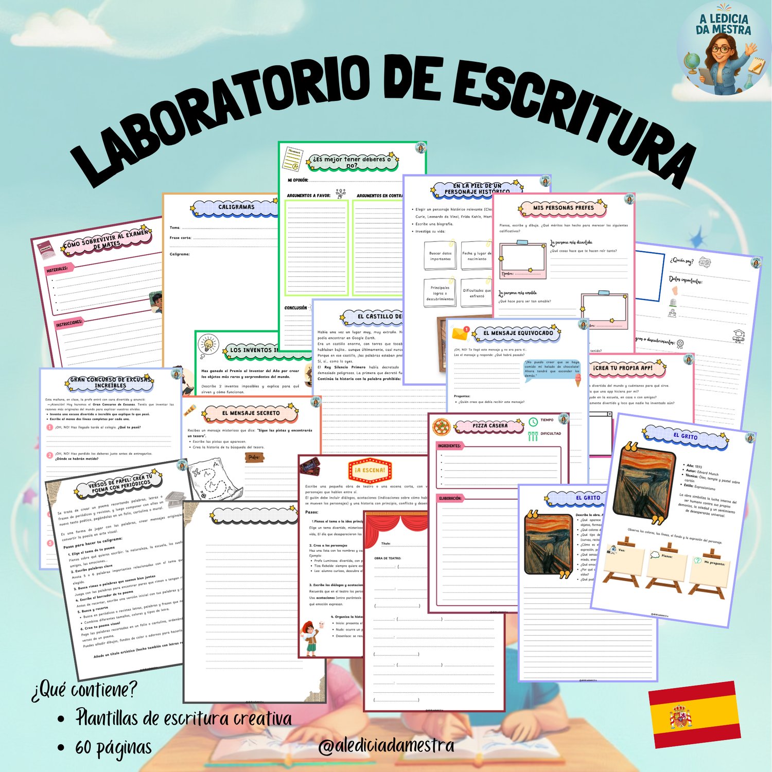 Este es un cuadernillo de escritura creativa compuesto de 60 páginas para trabajar la expresión escrita de una forma divertida y creativa.