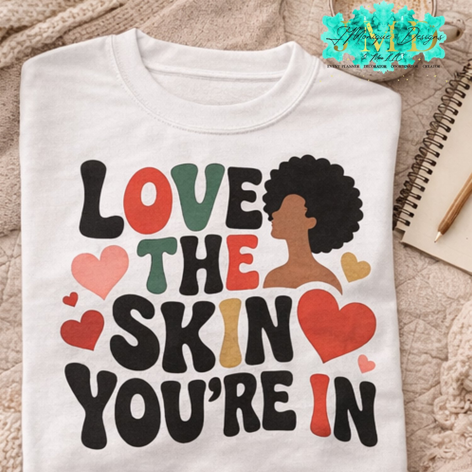 The “Love the Skin You’re In” design is a powerful self-love statement celebrating confidence, melanin, and inner beauty. Perfect for apparel, accessories, and affirmation merch, this high-quality PNG & SVG set is ready for your custom creations.