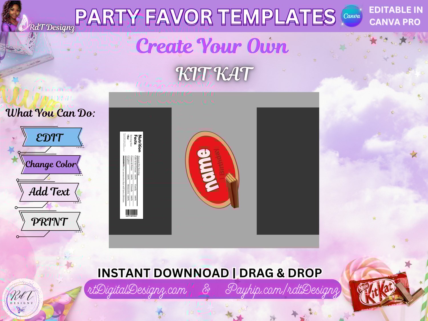 Treat yourself to our exclusive Digital Templates for our Friday Freebie! This week, indulge in the perfect combo of fun and customization with our "You Deserve a Break" kit. Featuring the iconic slogan, "Have a Break, Have a Kit Kat," you can personalize the candy wrapper with your own creative ideas and designs. Simply purchase the label template from RDT Designz website, add your personal touch, and create a delightful, eye-catching treat to share or enjoy yourself. Perfect for businesses, events, or just adding a sweet touch to your day!