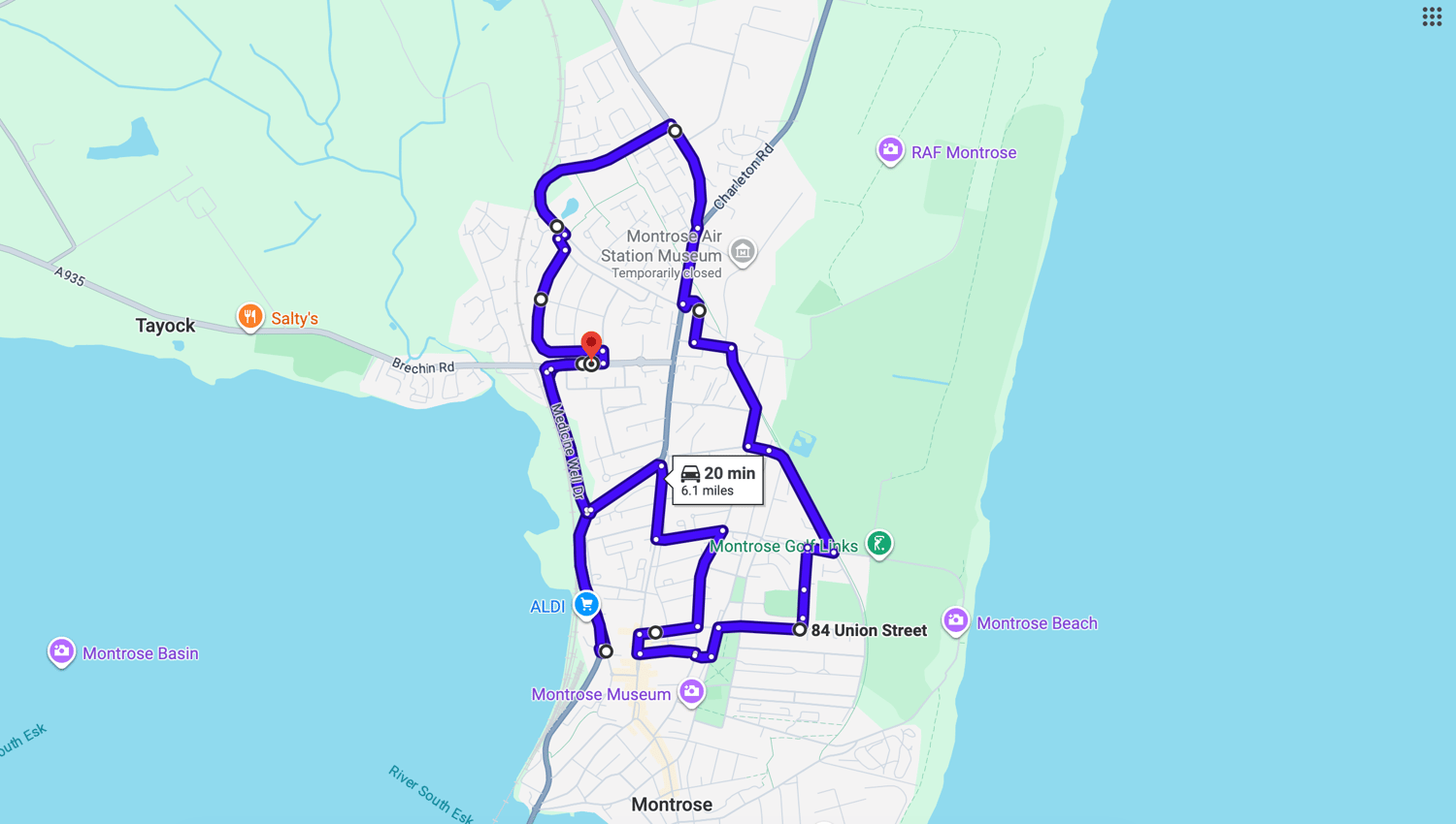 Practise real driving test routes in Montrose before your exam – open directly in Google Maps