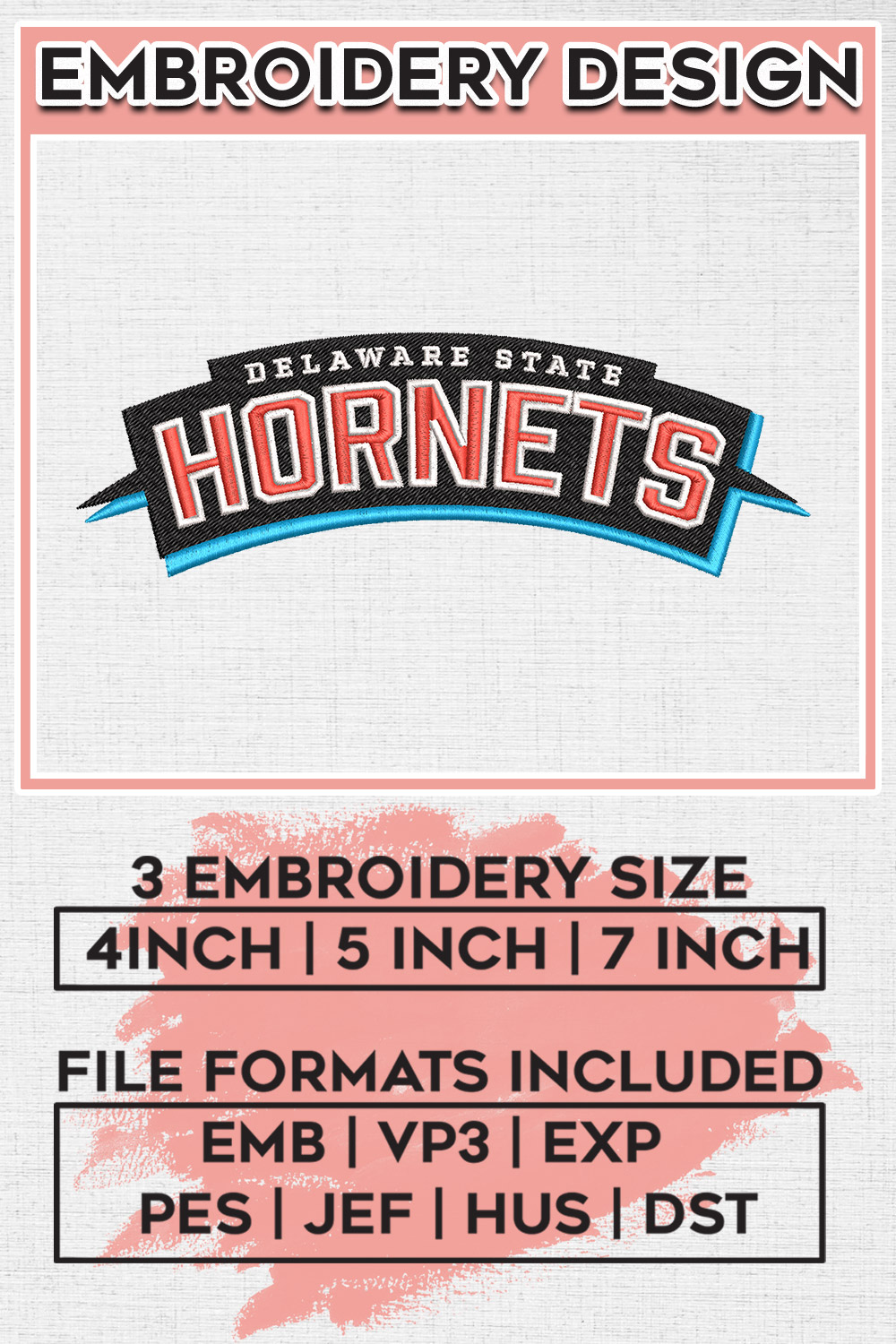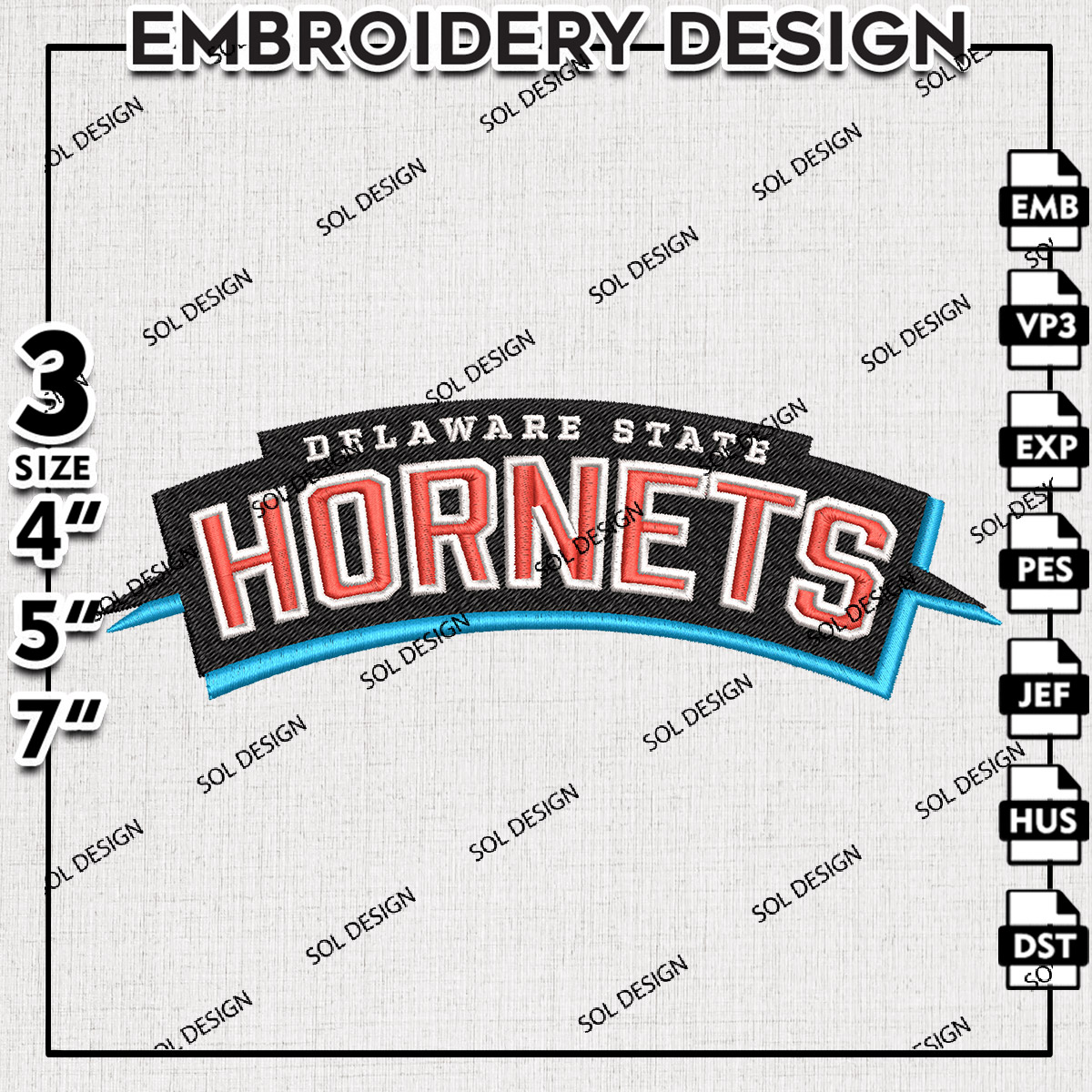 Delaware State Hornets Football Team Writing Logo Embroidery Designs, NCAA Delaware State Hornets Machine Embroidery Files, NCAA Logo embroidery designs, Ncaa Hornets Logo, Digital Download