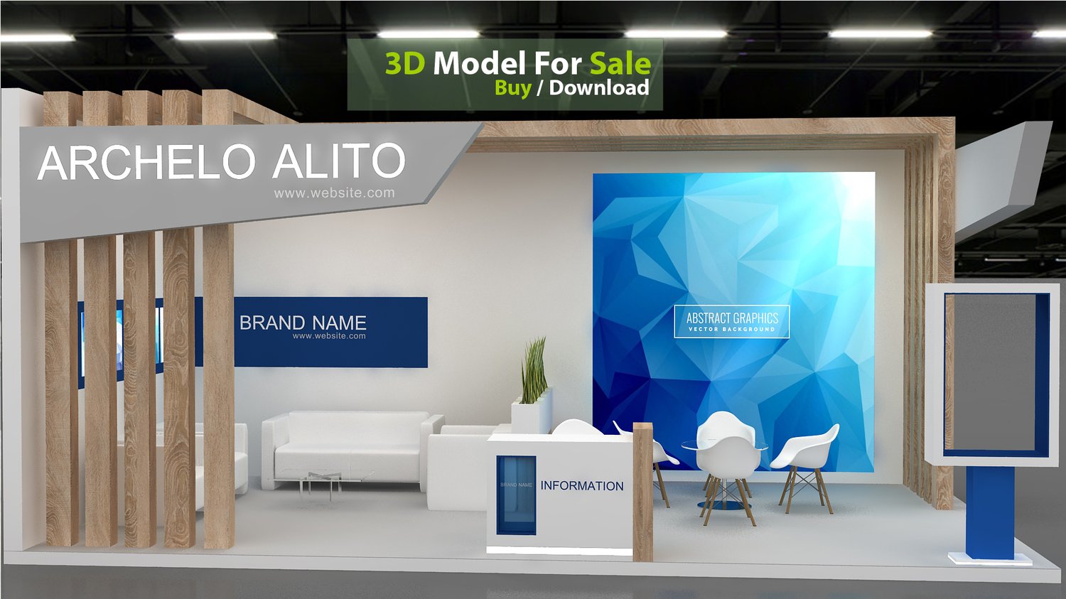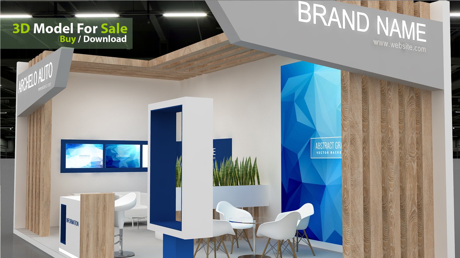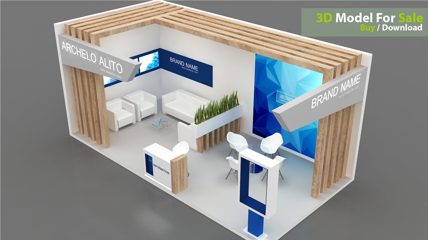 This professional 3D booth model is designed for exhibitions, trade shows, expos, fairs, and event displays.
