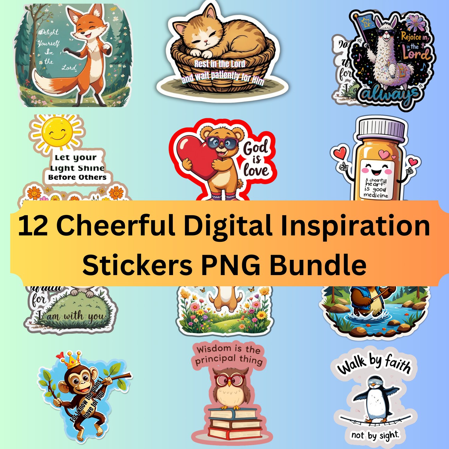 Our "Cheerful Inspiration digital Stickers " bundle of 12 PNG stickers