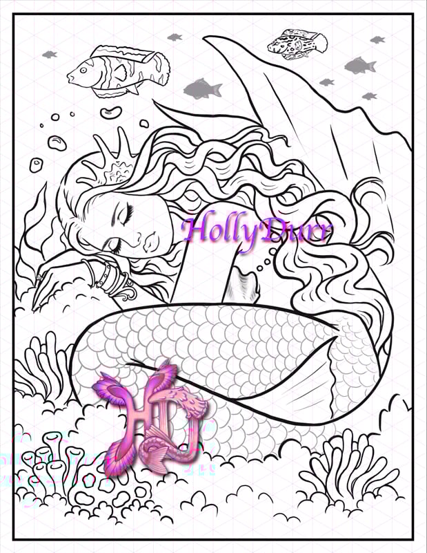 fantasy art mermaid fairy 5 digital coloring pages lot