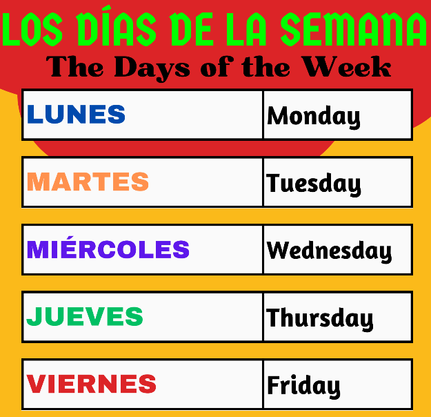 Spanish Language School Poster - Days of The Week - Wall Chart for Home and Classroom - Bilingual: Spanish and English Text.