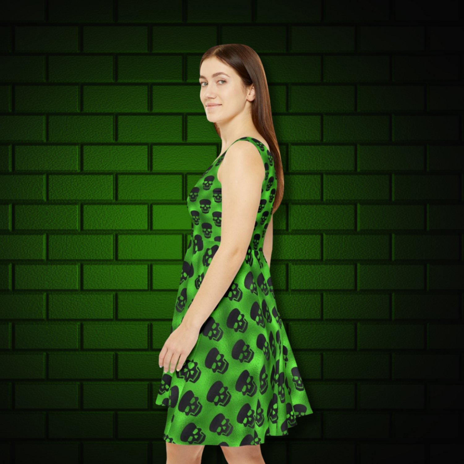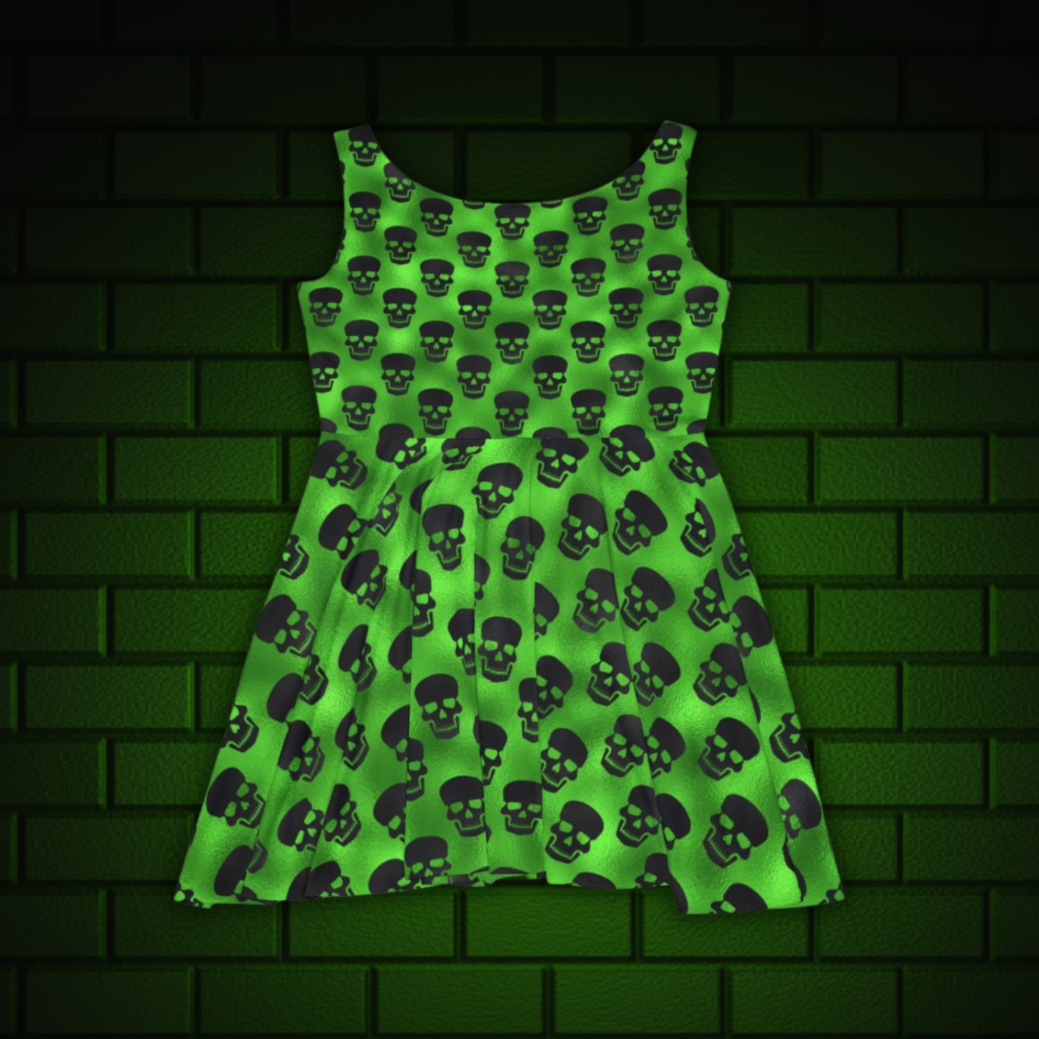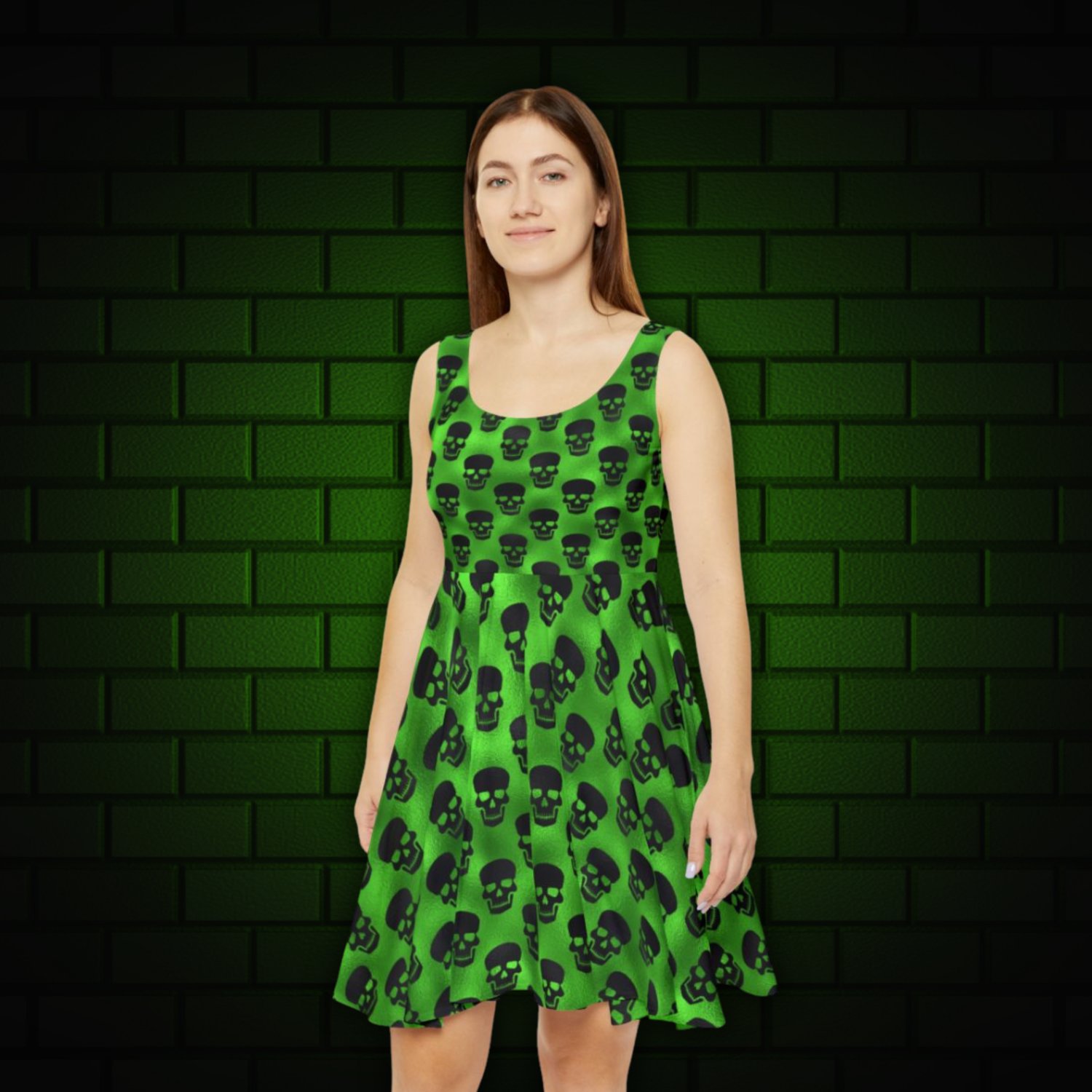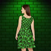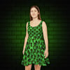 Green Skull Women’s Skater Dress – Bold & Playful Gothic Outfit for Parties, Festivals, and Everyday Edge