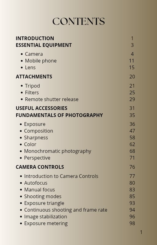 - Master photography basics (Exposure, Composition, Color) with ease.