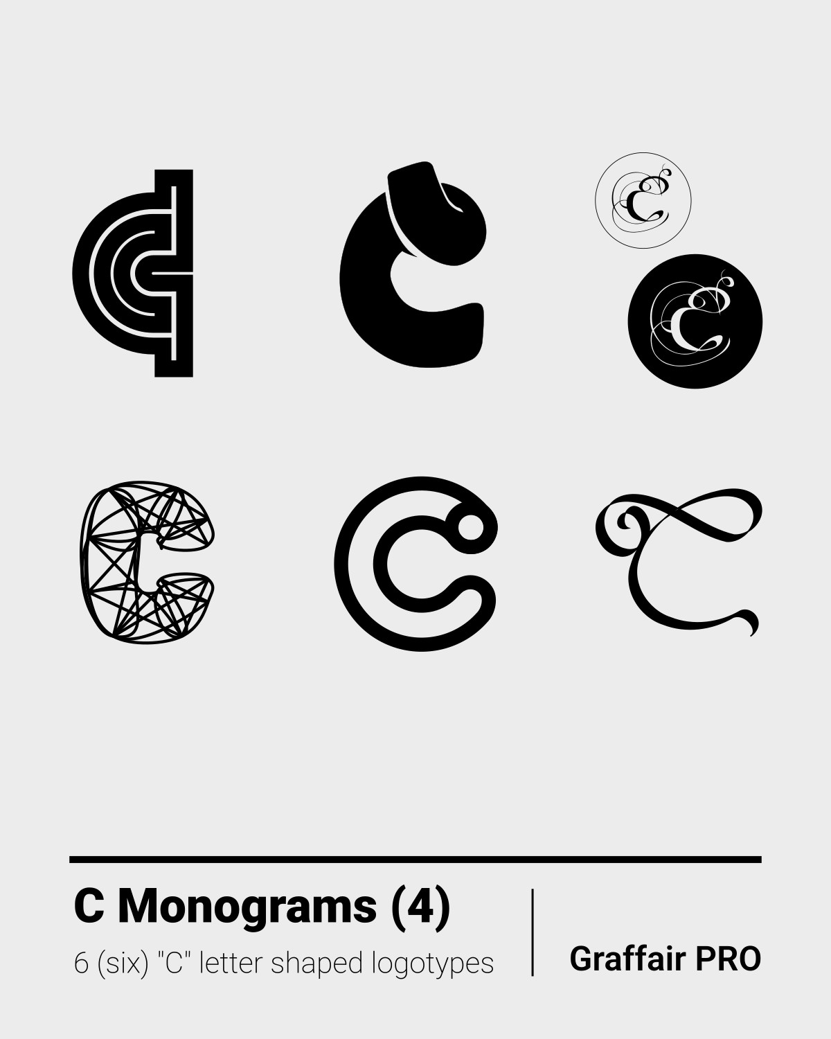 C Monograms (4): The fourth set of 6 (six) C's logo monograms, out of 30 ones, that you can find amongst the "1050 SVG Monograms" super package, which comes with an Index catalog.
