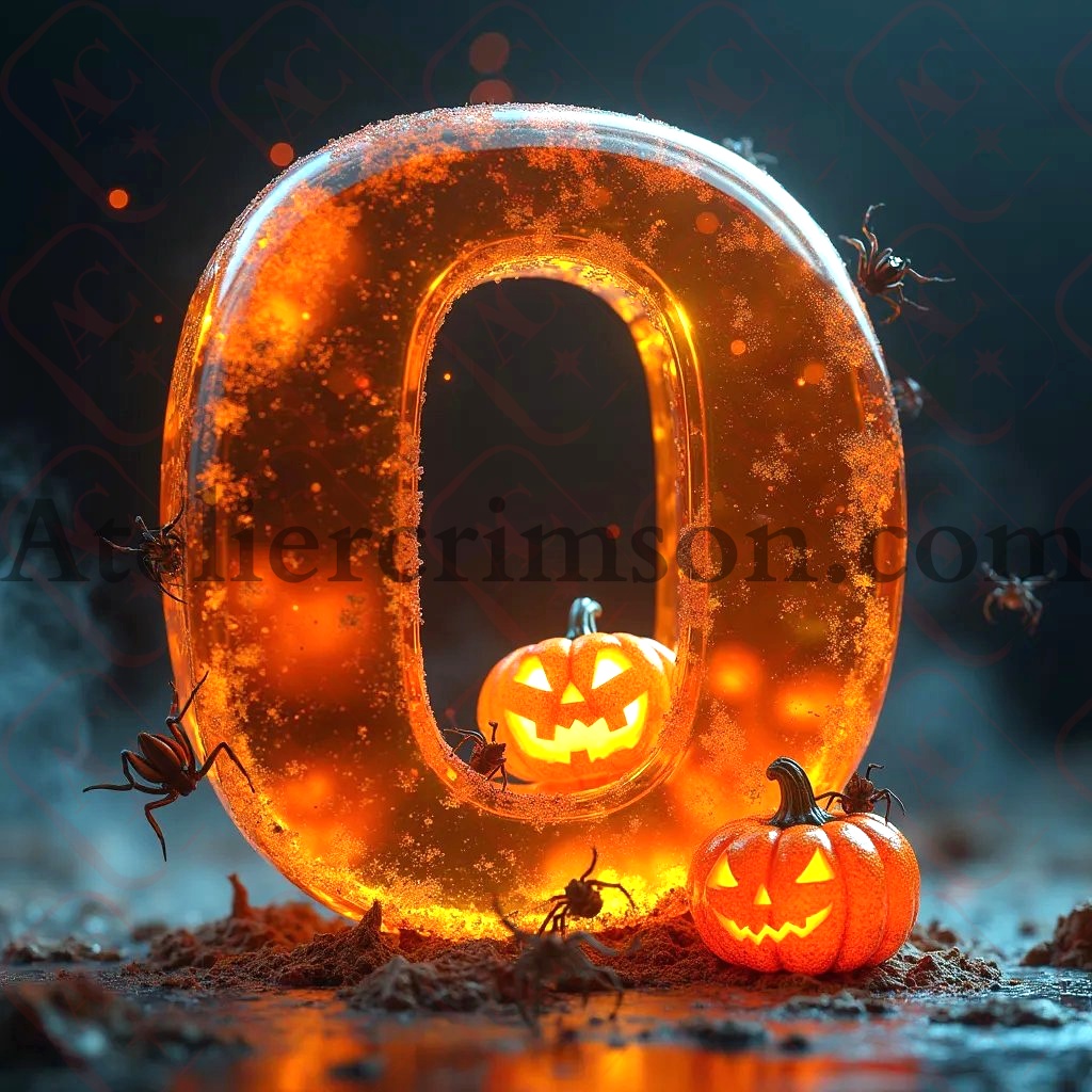 The letter Q amber spooky halloween