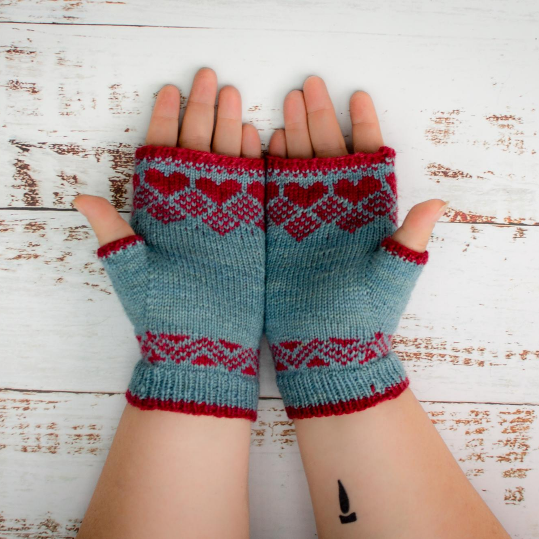 A simple and beautiful heart motif dances around Hearth's upper hand. Try the matching hat!
