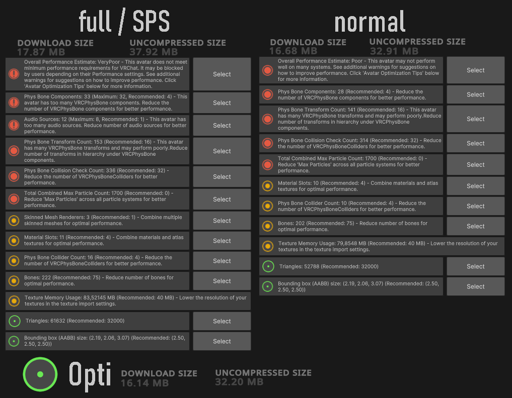 - versions: 1 without lights/no SPS, 1 with lights/SPS, 1 green/opti version