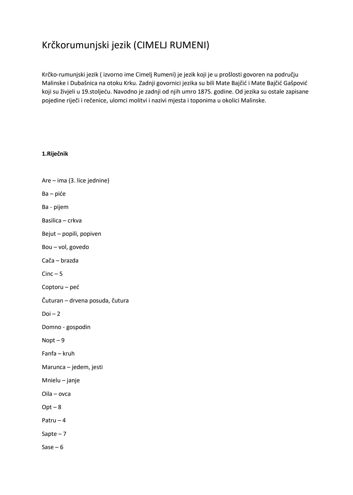 Krčkorumunjski jezik (izumrli) iz okolice Malinske na Krku. Nije isto što i dalmatski (veljotski) jezik.