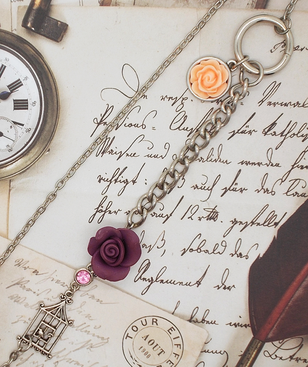 Handcrafted with steel chain, glass and resin beads