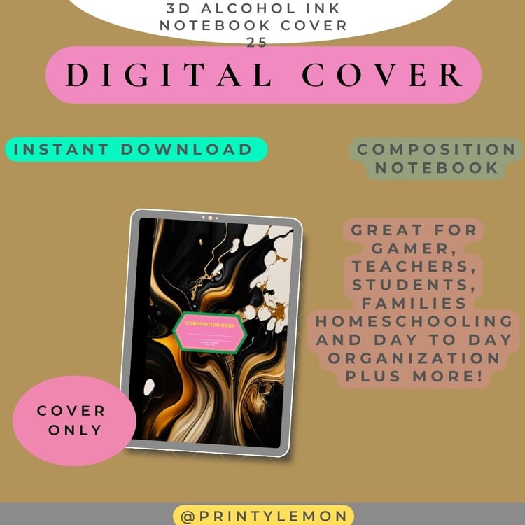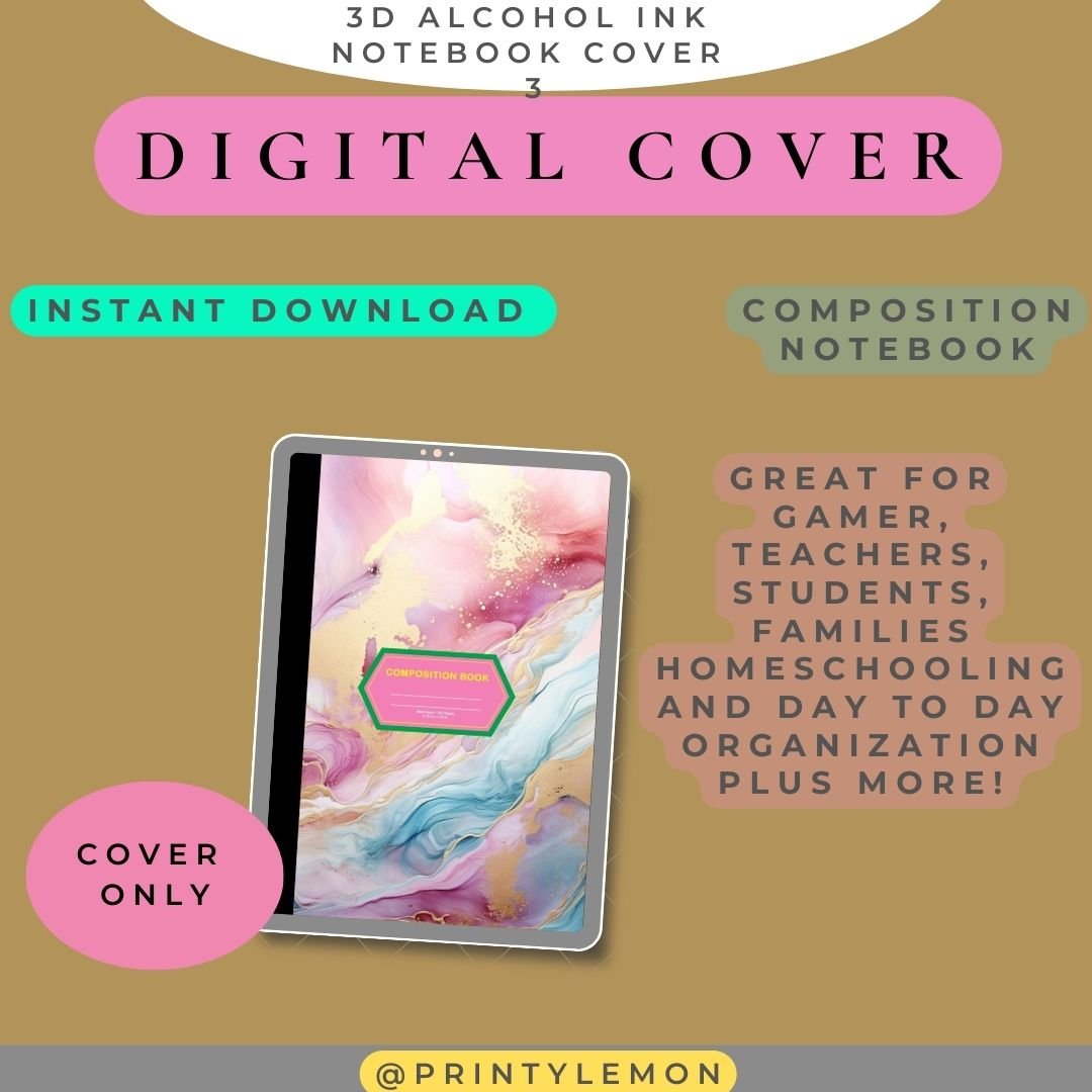 3 Alcohol Ink 3D | Digital Cover Premium | Notebook Cover | GoodNotes | Composition Notebook | Printable