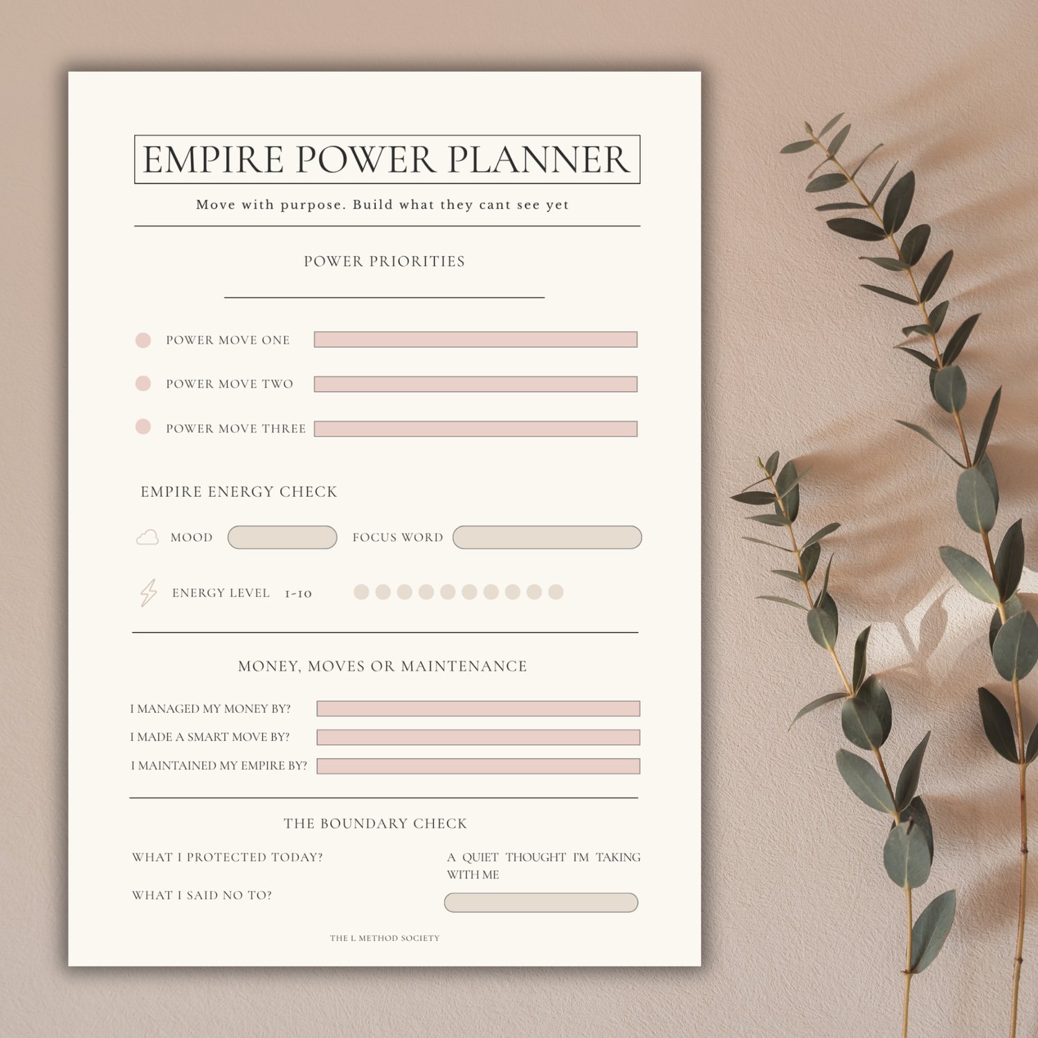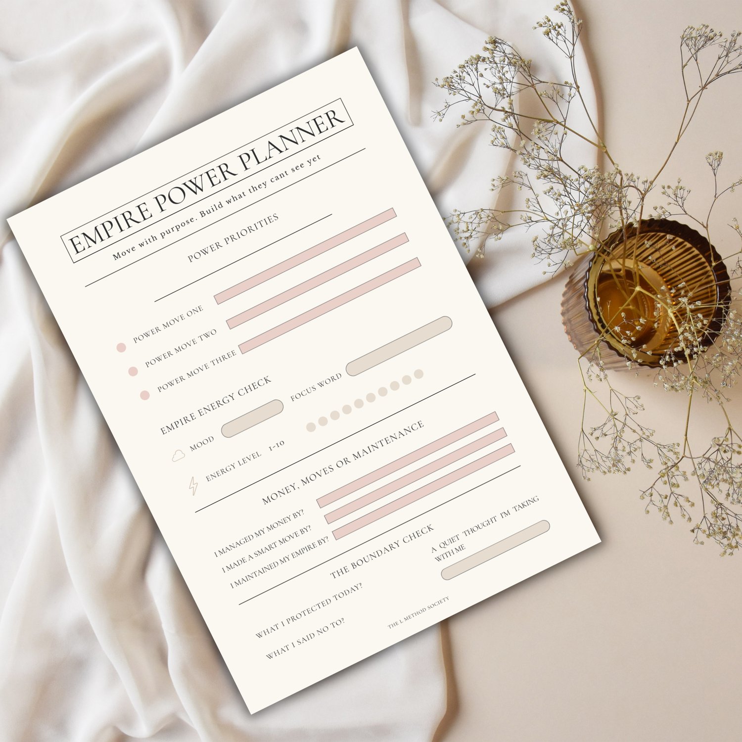 Build strong foundations with the Empire Power Plan – an editable, printable PDF designed to help you map out the key moves that grow your personal or business goals with clarity and intention.