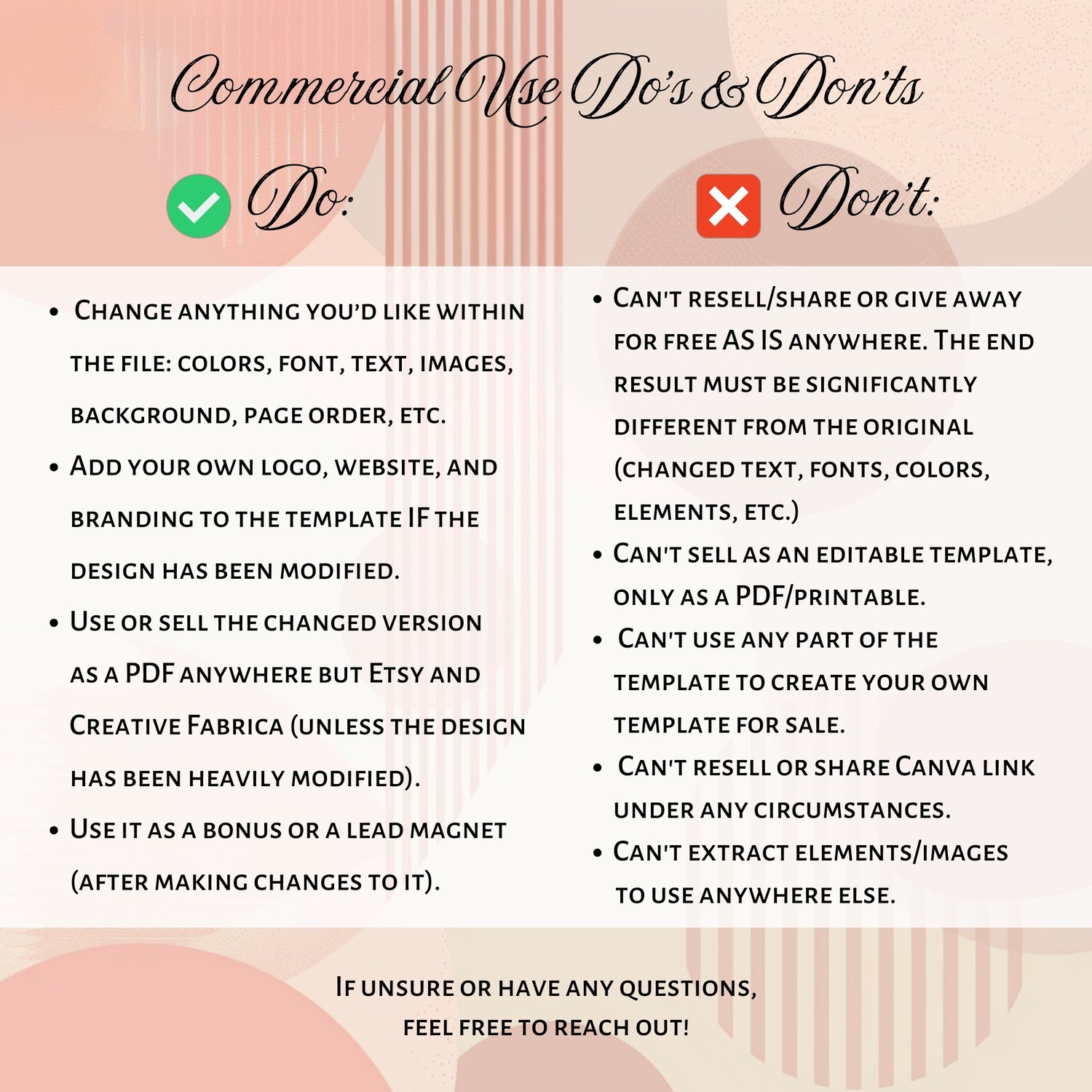 ~ Can't resell/share or give away for free AS IS anywhere. The end result must be significantly different from the original (changed text, fonts, colors, elements, etc.)