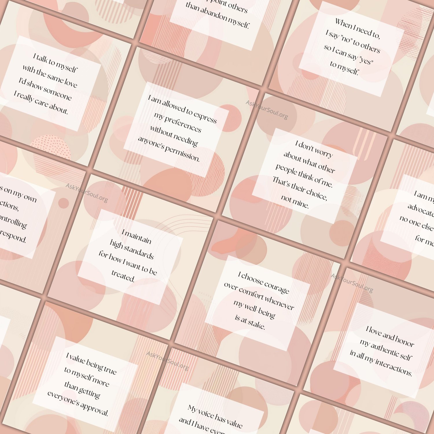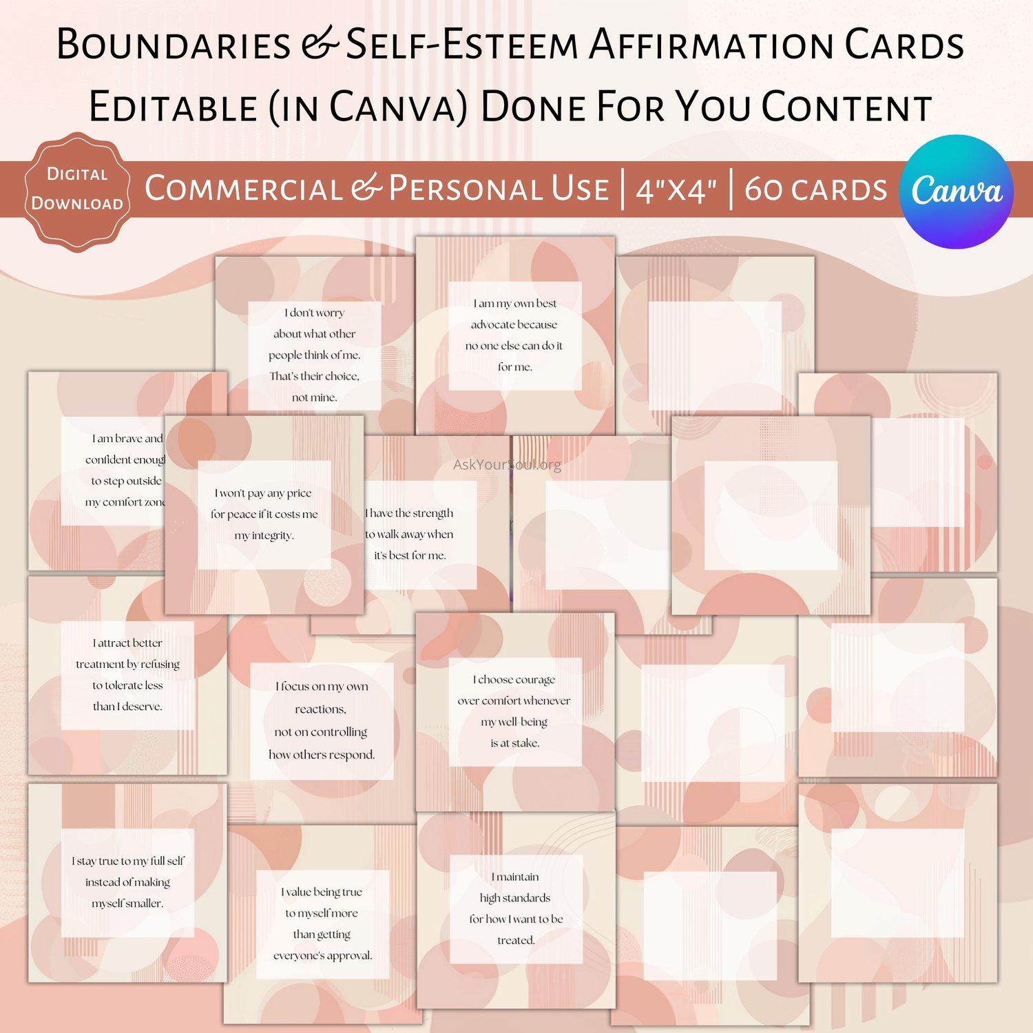 PLR Editable Boundaries & Self-Esteem Square Pastel Boho Affirmation Cards Canva Template
