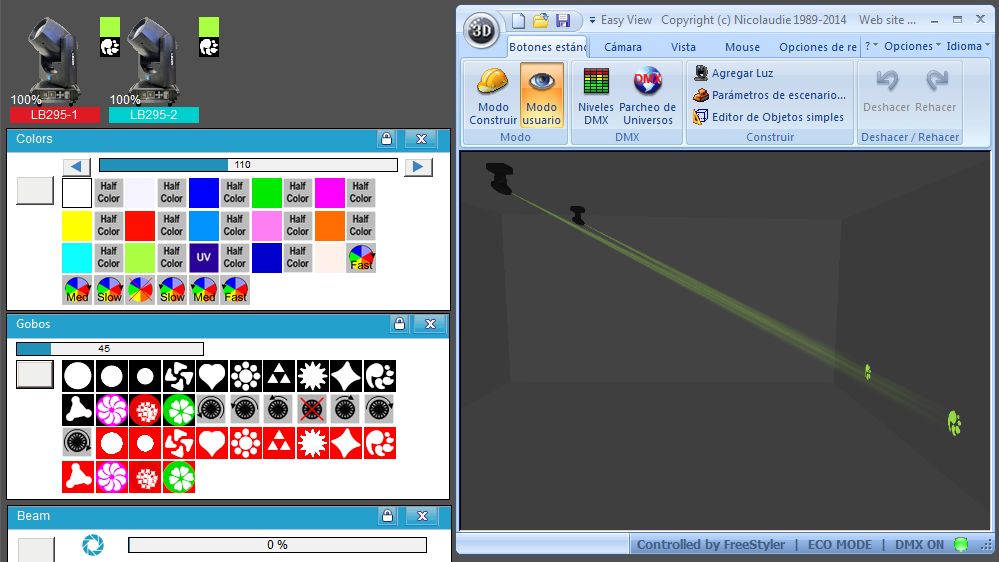- Esta librería NO reemplaza al Fixture de Freestyler o QLC+, sólo es para ver la representación 3D. Es decir, HAY QUE TENER YA EL FIXTURE DE FREESTYLER o de QLC+ para controlar el equipo real.
