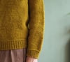 The cardigan is knitted seamlessly, from the top down. The collar is shaped with short rows and the sweater has some lovely details at bottom hem and cuffs.