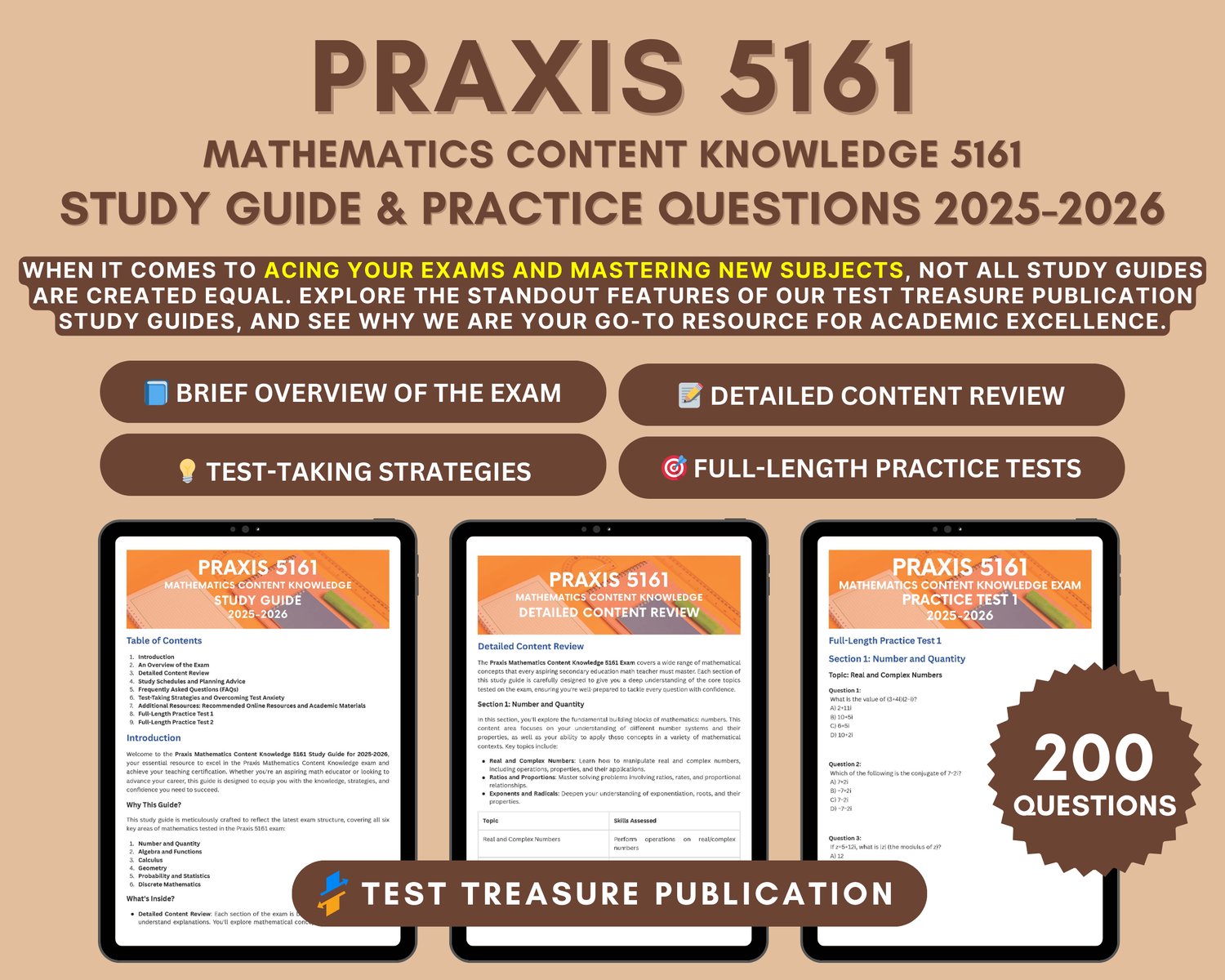 📚 Welcome to Test Treasure Publication's "Praxis Mathematics Content Knowledge 5161 Study Guide 2025-2026" — Your Ultimate Companion for Exam Success!