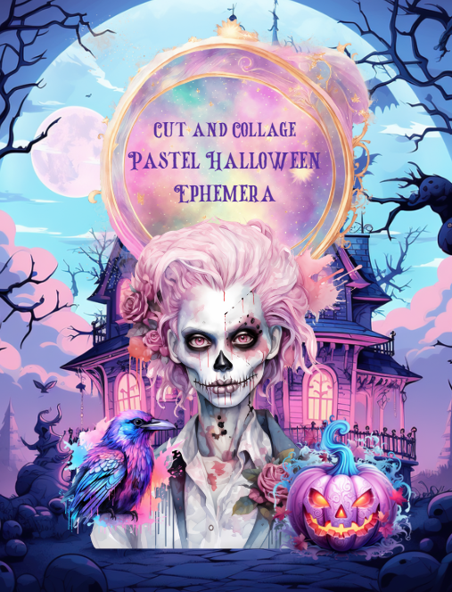 This Cut and Collage Pastel Halloween Ephemera Book features:
