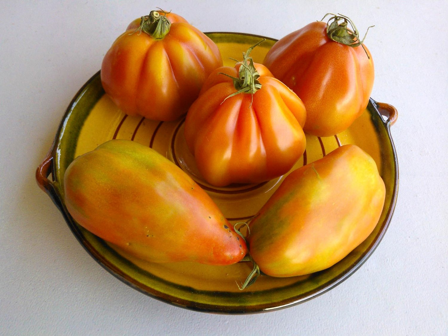 Two very rarely seen species of tomatoes called Cor de Bou (the round ones) and Tomaquet Pepper (the elongated ones).