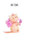 Cute and adorable watercolor Cartoon Cat. You will receive a set of 3 prints of Princess Cat with the following text, "Me Time", "Princess Cat" and "Sleeping Beauty".