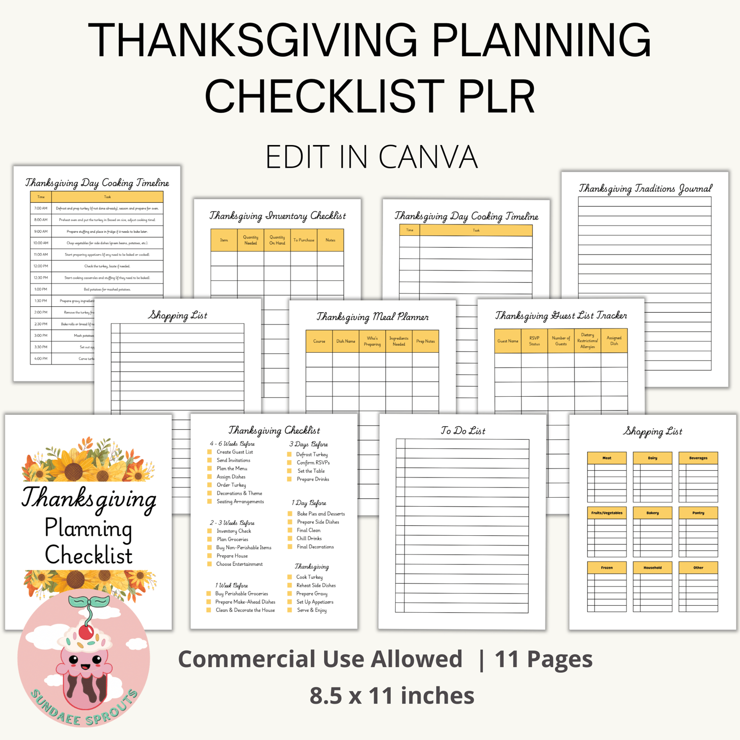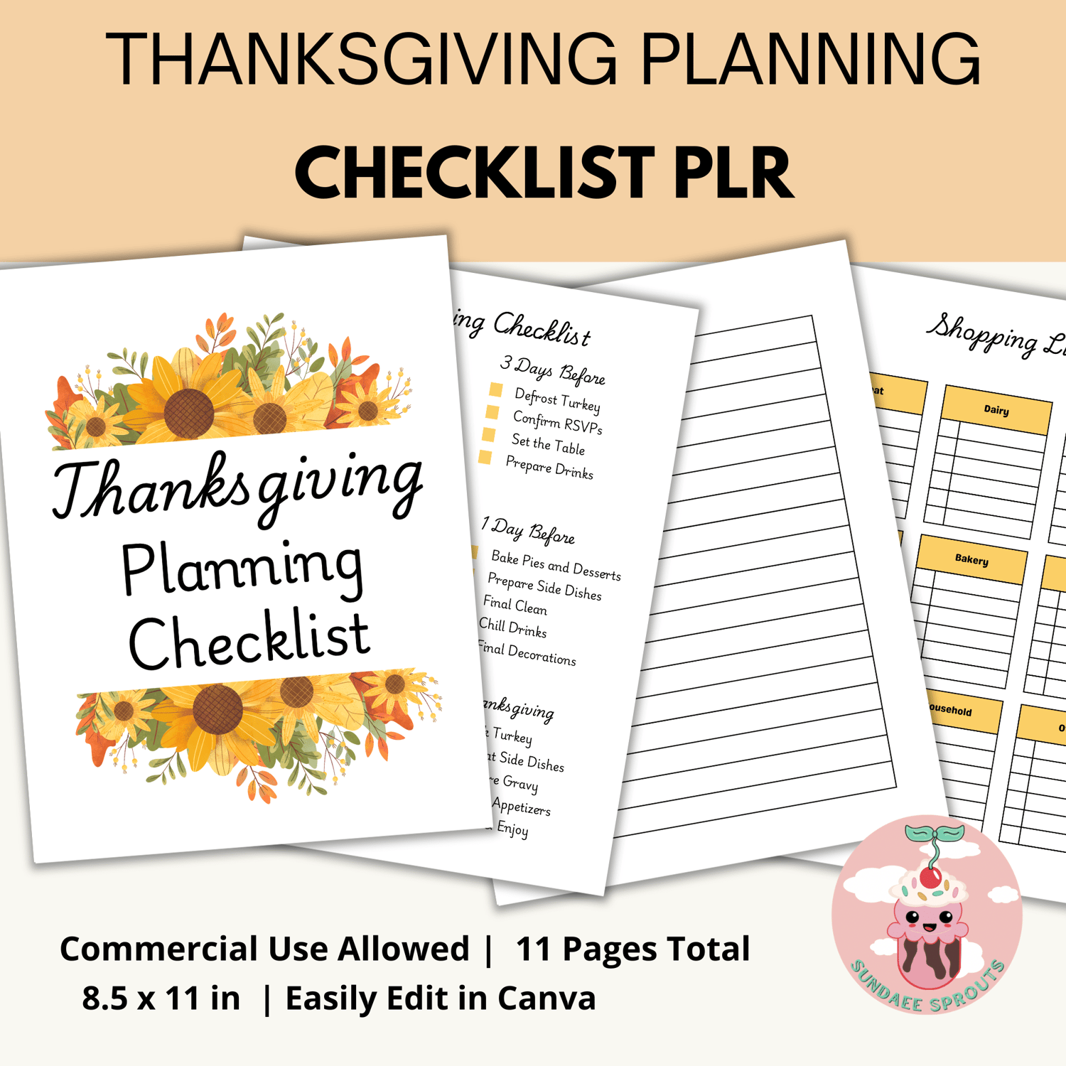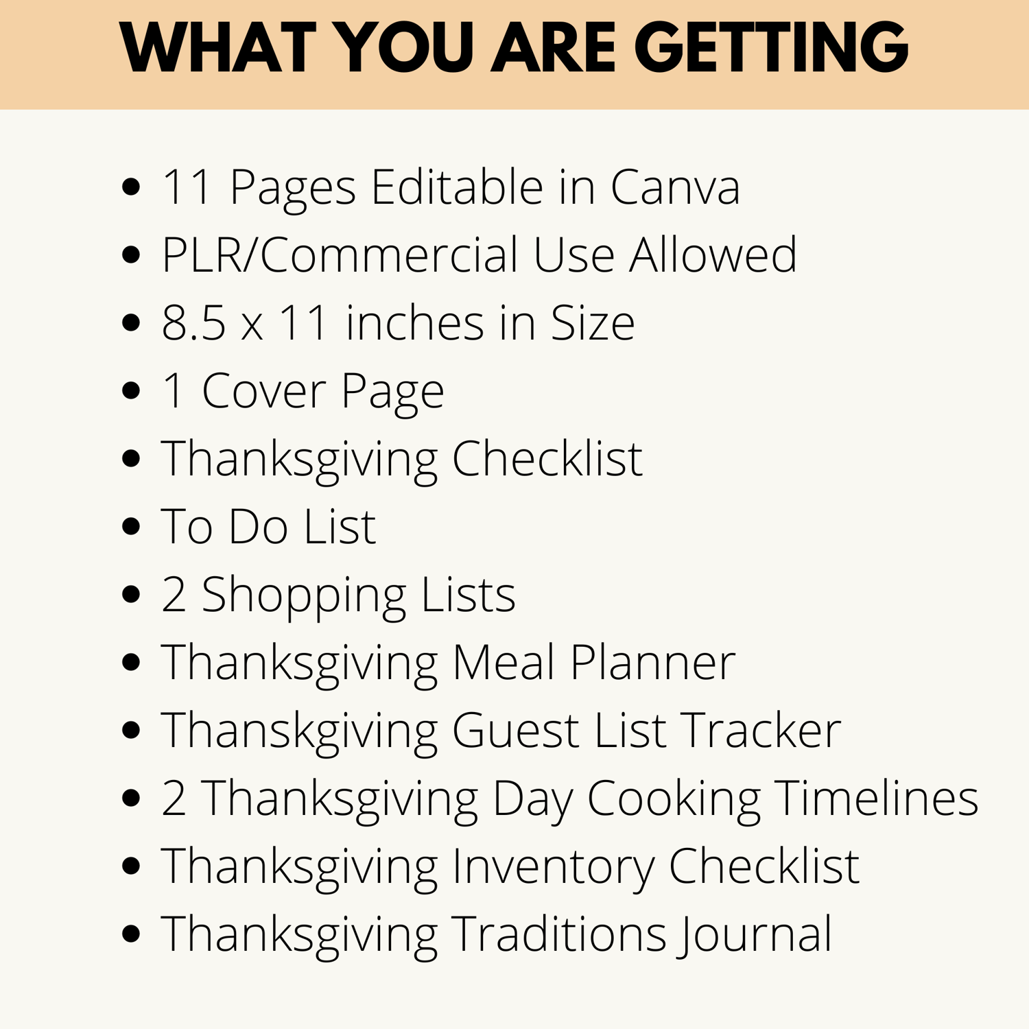 A beautifully simple Thanksgiving Planning Checklist PLR product that's made for you to quickly and easily edit in Canva. Just change the cover page, add some graphics, and change the colors and fonts to make this Thanksgiving PLR yours to sell.