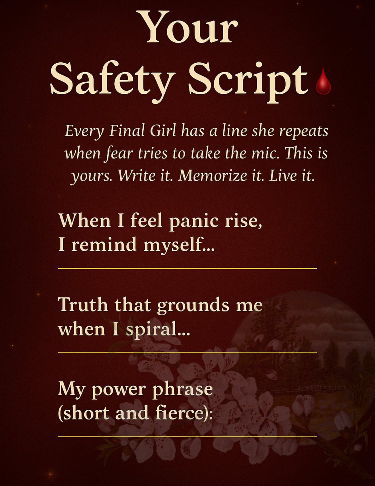- ๐ Ground Yourself Like a Final Girl โ Breathing and body awareness, cinematic-style.