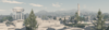 - Mountainous backdrop with layered ridgelines, valleys, and atmospheric haze for depth and scale